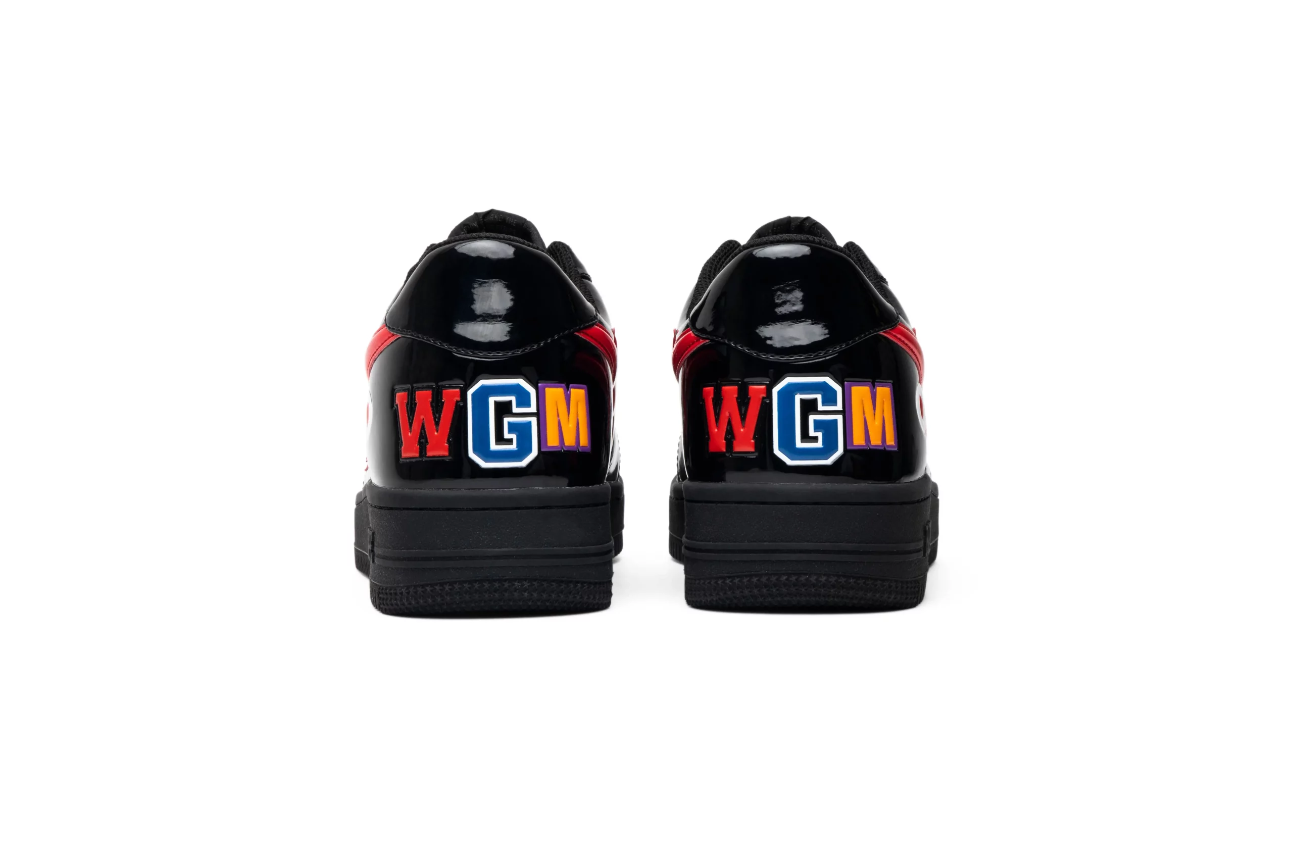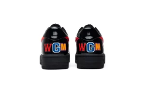 The A Bathing Ape Bape Sta Low 'Black Shark Face' merges streetwear flair with distinctive design elements. These low-top sneakers feature the classic Bape Sta silhouette crafted from premium materials in a sleek black colorway. The highlight of the shoe is the shark face graphic prominently embroidered on the sides, adding a bold and playful touch. Details such as the Bape Sta star logo on the heel and the iconic BAPE branding on the tongue enhance the shoe's urban appeal and authenticity. With a durable rubber sole for comfort and traction, these sneakers are ideal for making a stylish statement in casual and streetwear outfits, embodying Bape's renowned aesthetic and cultural influence.