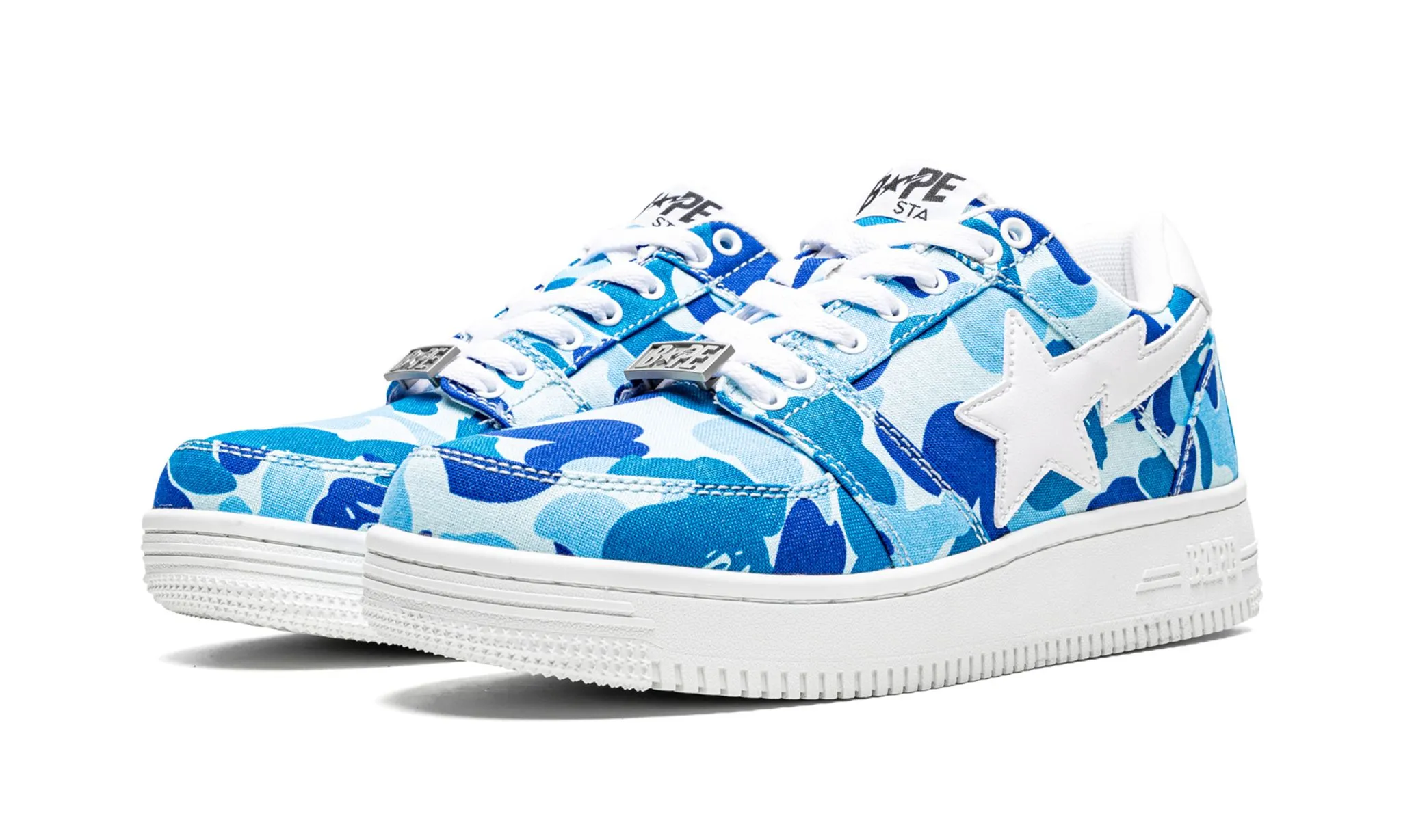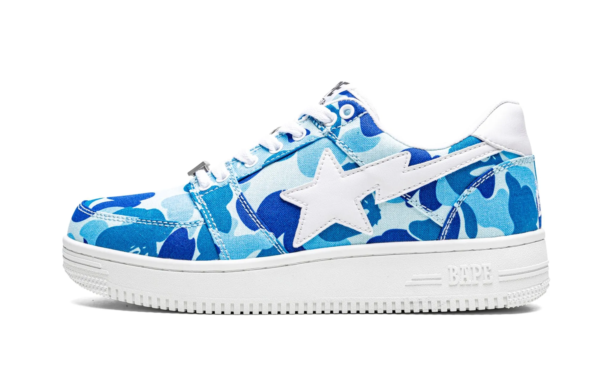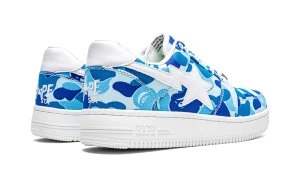 The A Bathing Ape Bape Sta Low 'Blue ABC Camo' blends bold camo patterns with urban streetwear flair. These low-top sneakers feature the iconic Bape Sta silhouette crafted from premium materials, showcasing a vibrant blue base adorned with distinctive ABC camouflage detailing. The shoe is accentuated by subtle Bape Sta star logos on the sides, maintaining the brand's signature aesthetic. A durable rubber sole ensures comfort and traction, making these sneakers suitable for daily wear. Ideal for those who appreciate statement footwear, the Bape Sta Low 'Blue ABC Camo' reflects Bape's unique blend of contemporary design and street culture influence.