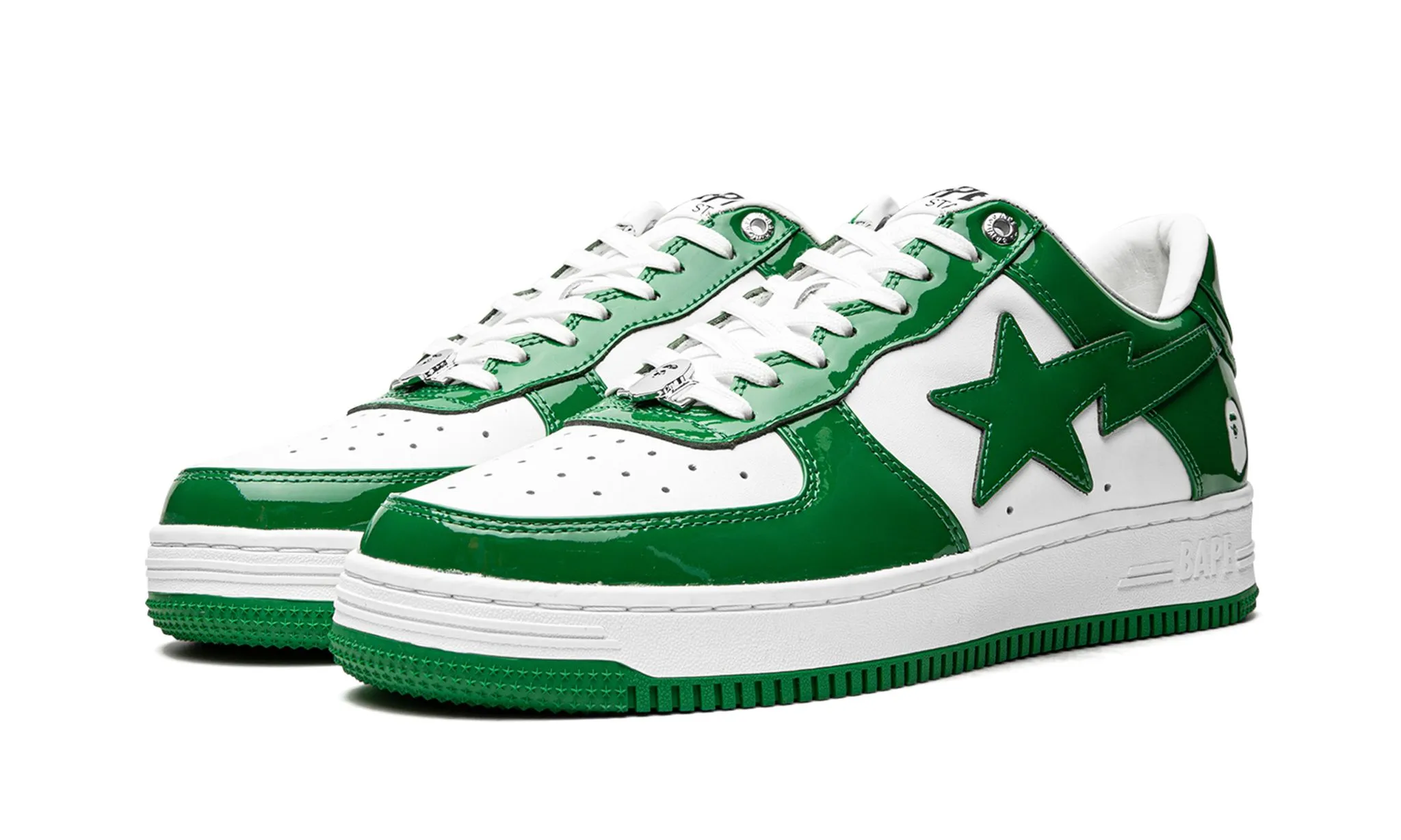 The A Bathing Ape Bape Sta Low 'Green' epitomizes urban cool with a vibrant twist. These low-top sneakers feature the iconic Bape Sta silhouette crafted from premium materials in a striking green colorway. The shoe's design is characterized by its simplicity and streetwear appeal, enhanced by subtle Bape Sta star logos on the sides. A durable rubber sole ensures comfort and stability, making these sneakers suitable for daily wear and urban exploration. Whether paired with casual or athleisure outfits, the Bape Sta Low 'Green' makes a bold statement while embodying Bape's celebrated fusion of style and street culture influence.