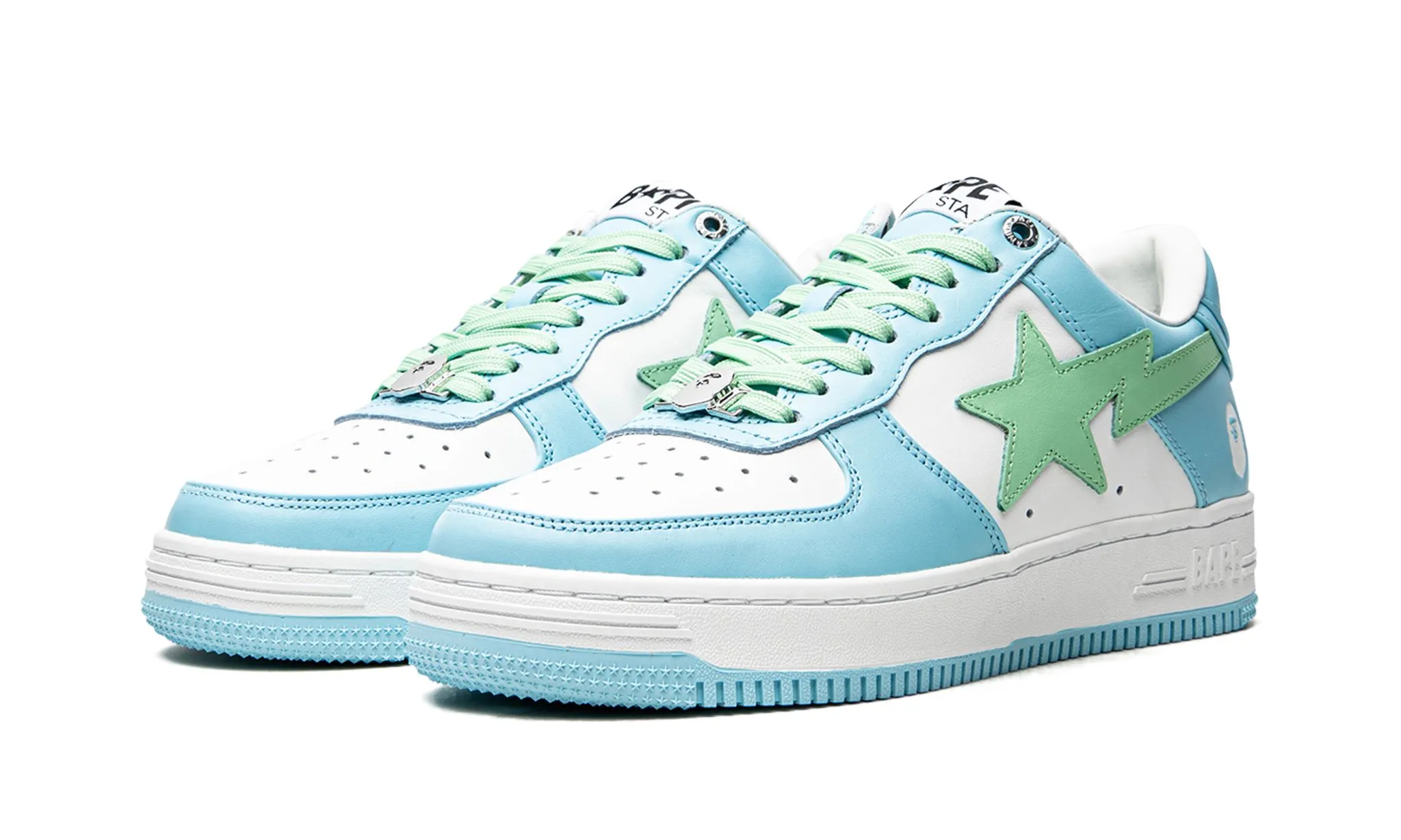 The A Bathing Ape Bape Sta Low 'Pastel Blue' offers a blend of subtle elegance and streetwear appeal. These low-top sneakers feature the classic Bape Sta silhouette crafted from premium materials in a soothing pastel blue colorway. The shoe is accented with minimalistic Bape Sta star logos on the sides, maintaining a clean and refined aesthetic. A durable rubber sole provides comfort and traction, making these sneakers suitable for everyday wear. Versatile and stylish, the Bape Sta Low 'Pastel Blue' is perfect for adding a touch of understated sophistication to casual and urban outfits, embodying Bape's renowned fusion of contemporary style and street culture influence.