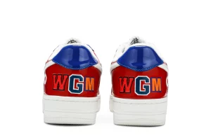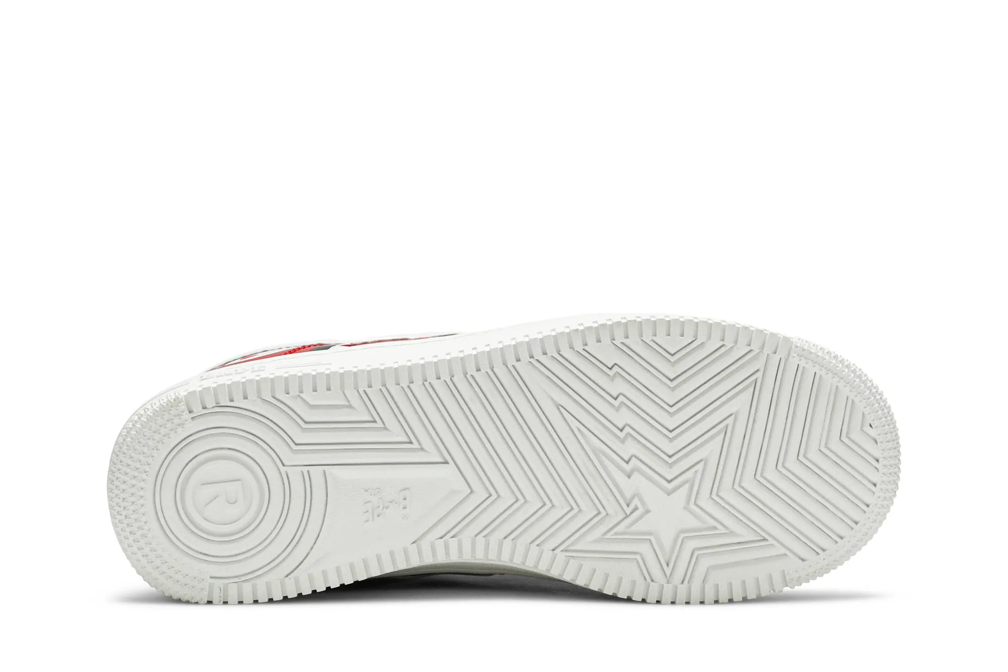 The A Bathing Ape Bape Sta Low 'Red Shark Face' combines bold design with urban streetwear allure. These low-top sneakers feature the iconic Bape Sta silhouette crafted from premium materials, showcasing a vibrant red colorway. A standout feature of the shoe is the shark face graphic prominently embroidered on the sides, adding a playful and distinctive element. Subtle Bape Sta star logos contribute to the shoe's signature detailing. With a durable rubber sole ensuring comfort and traction, these sneakers are suitable for everyday wear, making a bold statement in casual and streetwear fashion. Ideal for those who appreciate unique and expressive footwear, the Bape Sta Low 'Red Shark Face' encapsulates Bape's renowned fusion of creativity and street culture influence.