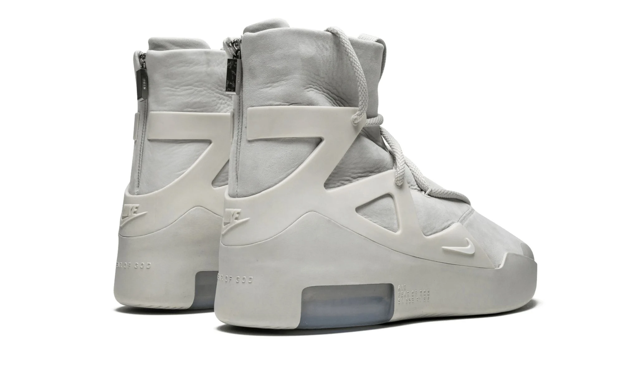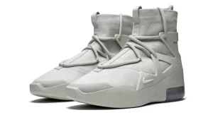 The Air Fear Of God 1 “Light Bone Sail” is a rare colorway given to those within the inner circle of Jerry Lorenzo's upscale streetwear brand. Sporting a decidedly progressive appearance, the hybrid performance basketball and lifestyle shoe has been worn on-court by today’s NBA superstars and in city streets by style savants alike. The upper features a premium Light Bone leather base that is contrasted by a staggered lacing system. A tonal TPU support cage emits a technical component while the sculpted midsole is equipped with visible Air cushioning. Dual Swoosh and Fear Of God branding can be found on the back of the shoe and a zip up closure on the heel allows for easy on-off wearability.