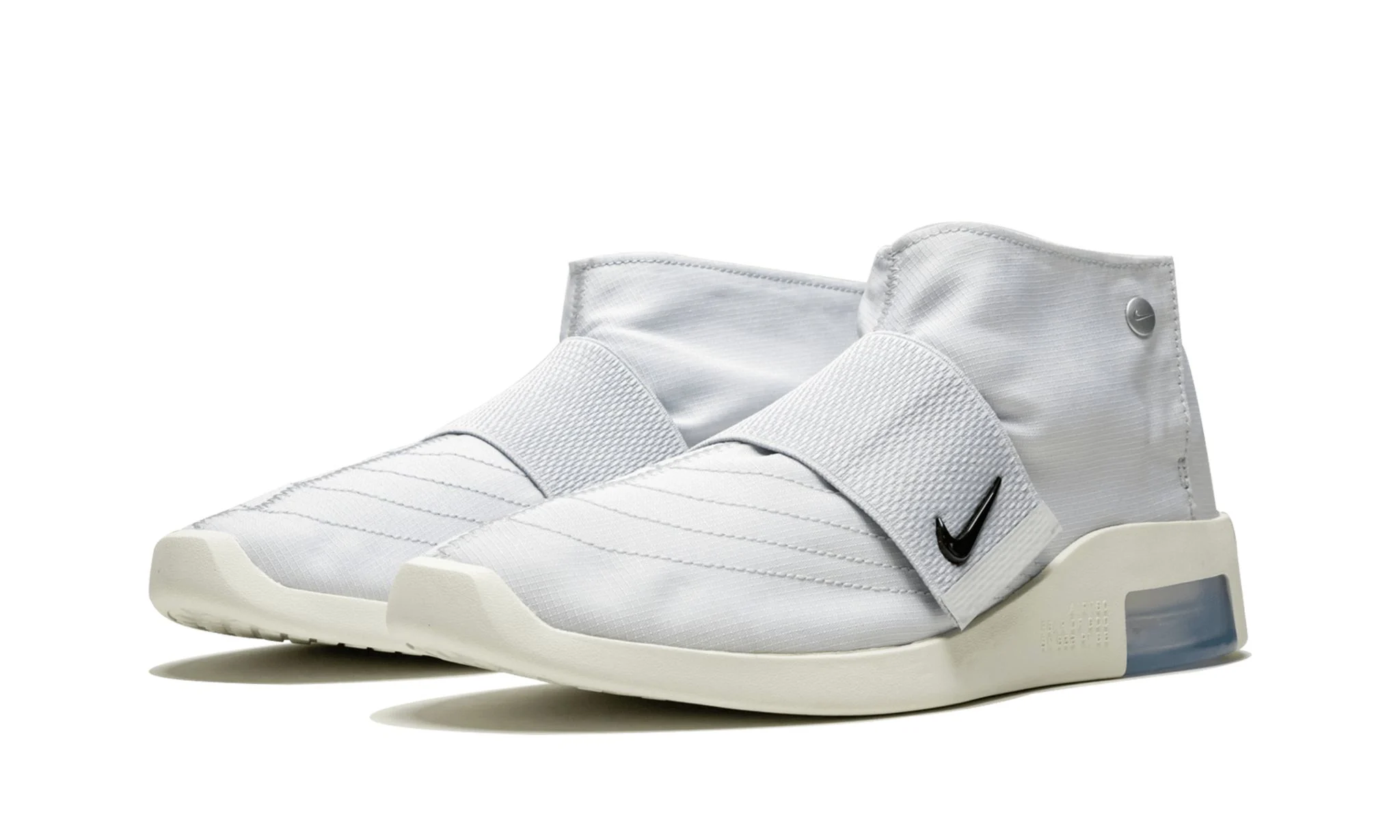 The Nike Air Fear of God Moccasin “Pure Platinum” is the debut colorway of the high-fashion inspired sneaker by Jerry Lorenzo. The Air Fear of God Moc features a sporty and fashionable take on the traditional moccasin design that delivers a laid-back look and feel. The model is constructed with a full ripstop nylon upper in Pure Platinum with a Sail hue on the sculpted midsole. The upper features a midfoot strap and a toggle rope at the heel for a custom fit. The Fear of God Moccasin also has a metallic silver snap to close the ankle paneling. The design is finished with a large Air 180 unit in the heel.