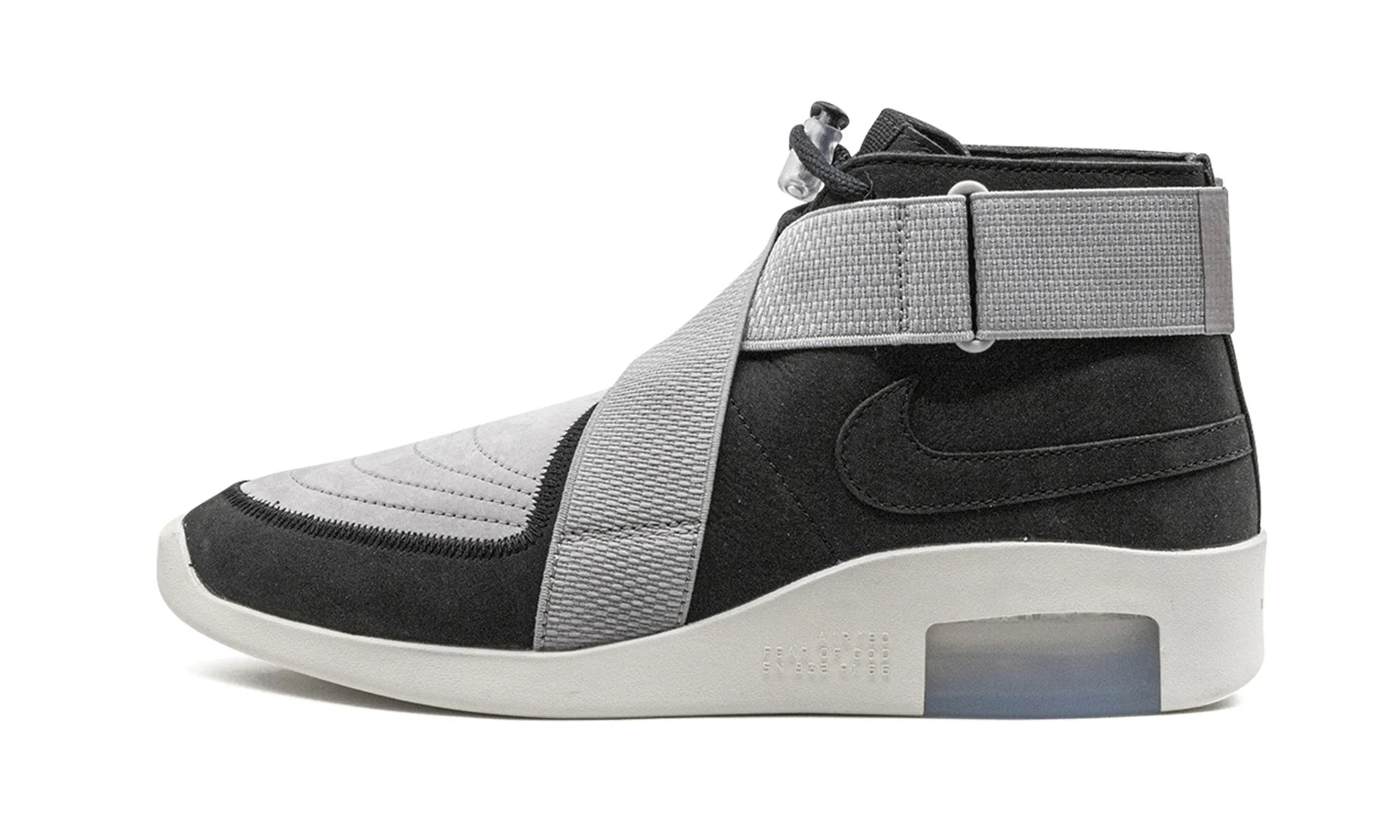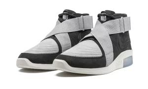 The Nike Air Fear of God Raid “Black/Grey F&F” is the “Friends & Family” version of the collaborative shoe based on Nike’s outdoors performance hoops design. The Air Fear of God Raid in this “Black/Grey” colorway was initially given to close family and friends of the Los Angeles based high fashion and streetwear brand founded by Jerry Lorenzo. The colorway then received a limited retail release during the summer of 2020. Replicating the Air Raid’s original black and grey colorway, the Fear of God Raid features midfoot cross-straps in grey nylon on the midfoot and collar. Underneath, Nike and Lorenzo utilize black suede to give the Air Raid a new luxurious finish. A clear lace lock assists in tightening and loosening the laces and a tonal Swoosh appears on either side. Finishing details include a grey toe in the same soft suede material as the rest of the body, a white midsole, and a visible Zoom Air unit in the heel.