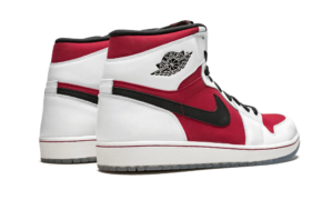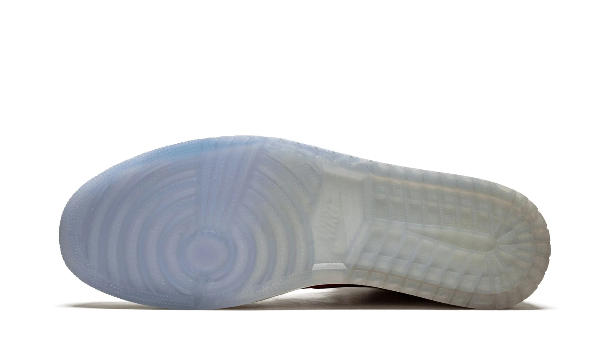 The Air Jordan 1 borrows the iconic “Carmine” color scheme from the Air Jordan 6, featuring a black and red upper with black accents and an icy clear sole.