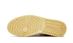 The Air Jordan 1 OG “Shattered Backboard 3.0” is the third release of the immensely sought-after “Shattered Backboard” colorway of the Air Jordan 1. The “Shattered Backboard” theme draws inspiration from an exhibition game in Italy in which Michael Jordan played during his rookie season. During the game, Jordan famously broke the glass of the backboard following a monstrous dunk. The first two iterations of the “Shattered Backboard” were a success due to their use of premium materials and eye-catching orange and black colorways. The “Shattered Backboard 3.0” falls in line with previous versions of the sneaker and adds new design features to stand out on its own. One noticeable difference is that a crinkled glossy patent leather upper replaces the leather found on the first two “Shattered Backboard” models. The black crinkled glossy leather is featured on the mid-panel, toe, and ankle collar. Pale Vanilla Starfish crinkled glossy leather adds bursts of color around the toe, quarter panel, Swoosh, and lateral heel. A black leather Wings logo sits near the collar. A vintage-inspired yellow sole gives the sneaker a lovingly worn in appearance.