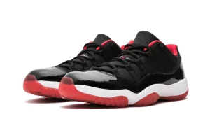 The Air Jordan 11 Retro Low 'Bred' brings an iconic colorway to a low-cut silhouette, blending classic design with contemporary appeal. Featuring a sleek black patent leather and mesh upper, the shoe is complemented by bold hits of varsity red on the branding, lining, and outsole. The design retains hallmark elements such as the carbon fiber plate and translucent red outsole, maintaining the signature look of the original Air Jordan 11. Underfoot, the shoe offers responsive cushioning with a full-length Air-Sole unit and Phylon midsole, ensuring comfort and support. The Air Jordan 11 Retro Low 'Bred' is a versatile choice for both casual wear and basketball enthusiasts, capturing the essence of MJ's legacy in a stylish and functional package.