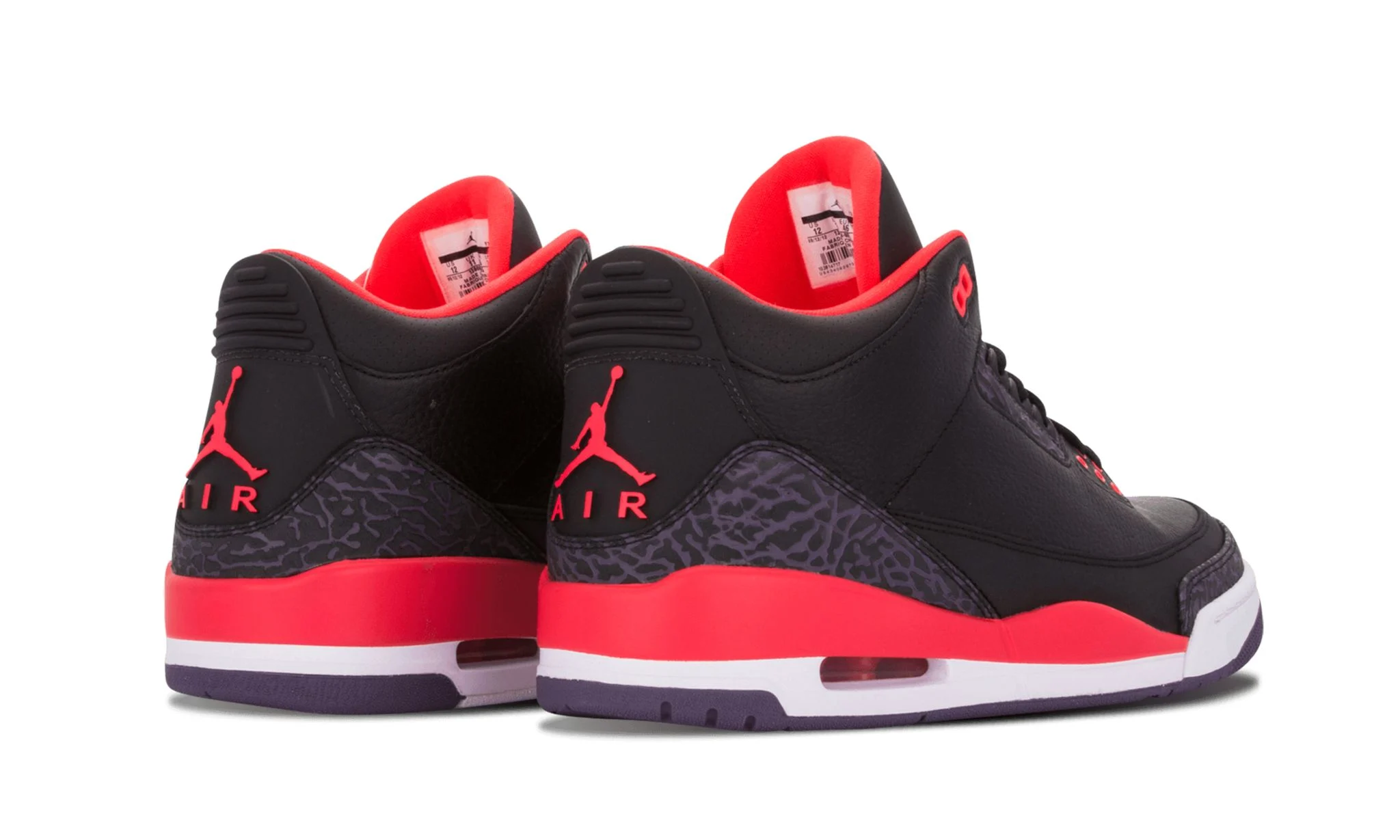 The Air Jordan 3 Retro 'Crimson' was released in February 2013 and was one of three colorways released that month. The 'Crimson' comes with a Bright Crimson midsole and lining that stands out against the sneaker's black tumbled leather upper. Separating it from previous iterations, the Air Jordan 3 Retro 'Crimson' features reflective paneling on the upper. The Air Jordan 3 is one of the most popular sneakers of all time and this 'Crimson' colorway is sure to be a hit with sneakerheads and Jordan fans alike. Don't miss your chance to get your hands on a pair of these iconic sneakers.
