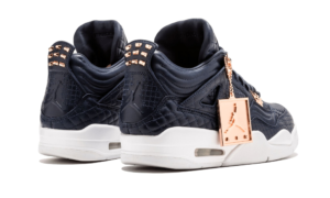 From the ‘Pinnacle’ line of Air Jordan 4 colorways which outfit the classic sneaker in its most premium constructions ever, this version features a quilted leather upper on Obsidian with brass detailing. A contrasting white midsole and matching metal hang tags finish off the luxurious release.
