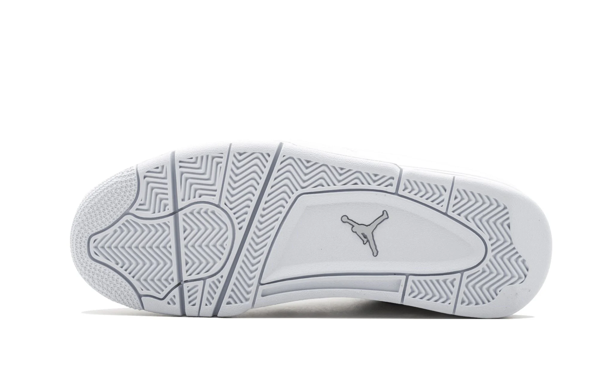 The Air Jordan 4 Retro 'Pure Money' 2017 edition revisits a clean and timeless colorway originally introduced in 2006. This release features a predominantly white leather upper with subtle touches of pure platinum on the lace tabs, heel tab, and Jumpman logo on the tongue. The shoe is crafted with premium materials, including mesh paneling for breathability and durability. A visible Air-Sole unit in the heel provides cushioned comfort, while a white midsole and translucent outsole complete the sleek design. The Air Jordan 4 Retro 'Pure Money' 2017 retains its classic appeal and minimalist aesthetic, appealing to collectors and fans of Jordan Brand footwear for its versatile and understated style.