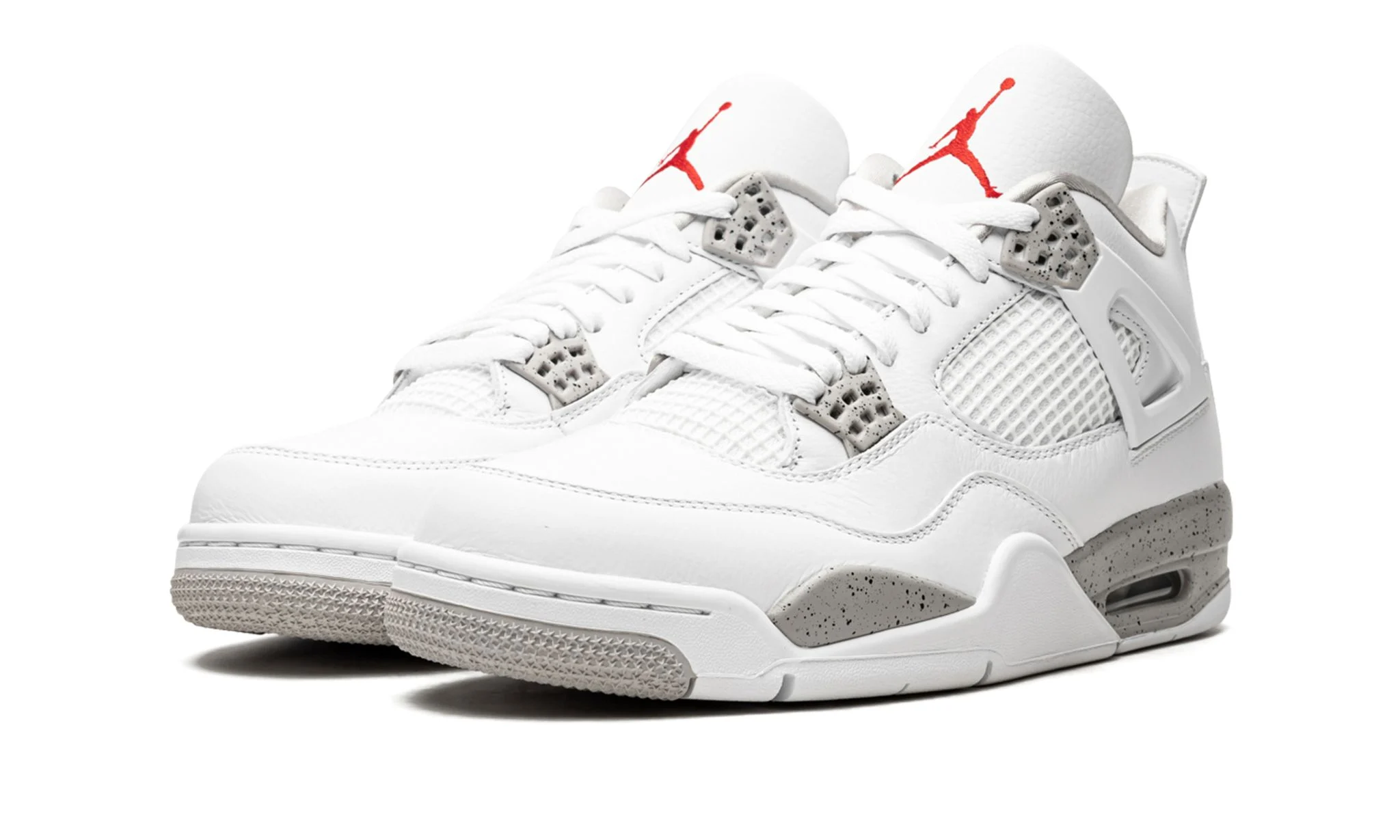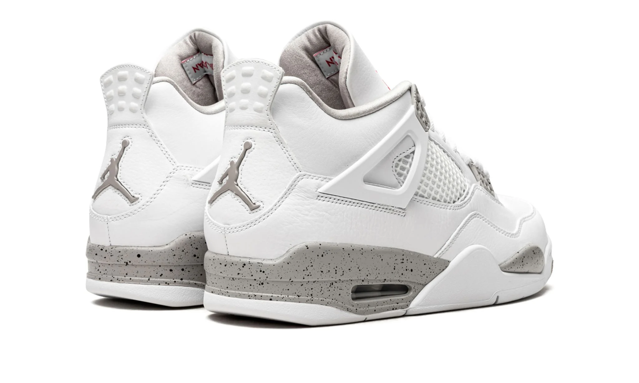 The Air Jordan 4 “White Oreo” is a Summer 2021 release by Jordan Brand that combines two popular colorways of Michael Jordan’s fourth signature shoe into one design. The styles we’re referring to are the Jordan 4 “Oreo” and “White/Cement,” which are fused together to create the predominantly monochromatic white design of the “White Oreo.” Like the “White/Cement,” the “White Oreo” shares a white tumbled leather construction with cement grey speckling on the eyelets and on the painted midsole. White netting can be found on both the mid-panel and tongue. Jordan Brand paints the model’s signature “wings” white and adds a Fire Red embroidered Jumpman to the white leather tongue. A metallic silver Jumpman logo adorns the heel. A small visible Air unit can be found in the heel of the cement grey midsole to finish off the look.