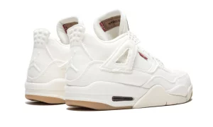 The Air Jordan 4 Retro x Levi's 'White Denim' is a collaborative release that combines Jordan Brand's iconic silhouette with Levi Strauss & Co.'s renowned denim craftsmanship. Released in 2018, this edition features a crisp white denim upper that exudes a clean and stylish aesthetic. The shoe is accented with Levi's signature red tab on the quarter panel, alongside Jumpman branding on the tongue and heel. Details such as metal eyelets and contrasting stitching add to the rugged yet refined look. A white midsole with visible Air-Sole units ensures cushioned comfort, while a gum rubber outsole provides traction and durability. The Air Jordan 4 Retro x Levi's 'White Denim' blends classic denim heritage with the timeless appeal of the Air Jordan 4, appealing to both sneaker enthusiasts and fans of Levi's iconic denim products.