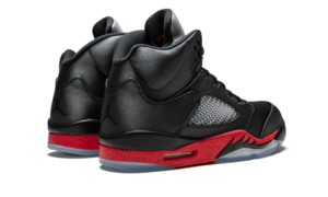 The Air Jordan 5 “Satin” is a premium makeover of the fifth Michael Jordan signature shoe that released during fall 2018. After using it on other Jordans, the Jordan Brand applied the satin construction to the Air Jordan 5 for the first time. The impressive rendition features shiny black satin covering the upper with a speckled red midsole for a twist on the classic Chicago Bulls color scheme. The construction of the Air Jordan 5 “Satin” includes two of the silhouette's most classic details: a reflective silver tongue and a clear rubber outsole. “Recognize” and “Greatness” are inscribed on the patches on the inside of each tongue.