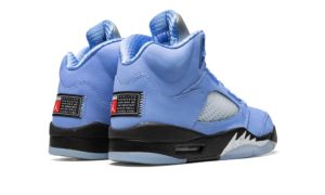 The Air Jordan 5 “UNC” is a colorway of the retro basketball shoe in a colorway inspired by Michael Jordan’s alma mater, the University of North Carolina. The “UNC” Jordan 5 is not affiliated with the UNC Tar Heels, but nonetheless draws inspiration from the school and its college basketball team. The upper is designed in a University Blue nubuck construction with translucent netting on the tongue and mid-panel. A Jumpman is embroidered on the reflective Metallic Silver tongue. The heel is updated with a Team Jordan patch stitched on each shoe, while the model’s signature icy clear outsole is paired with a black midsole that features silver shark tooth detailing.