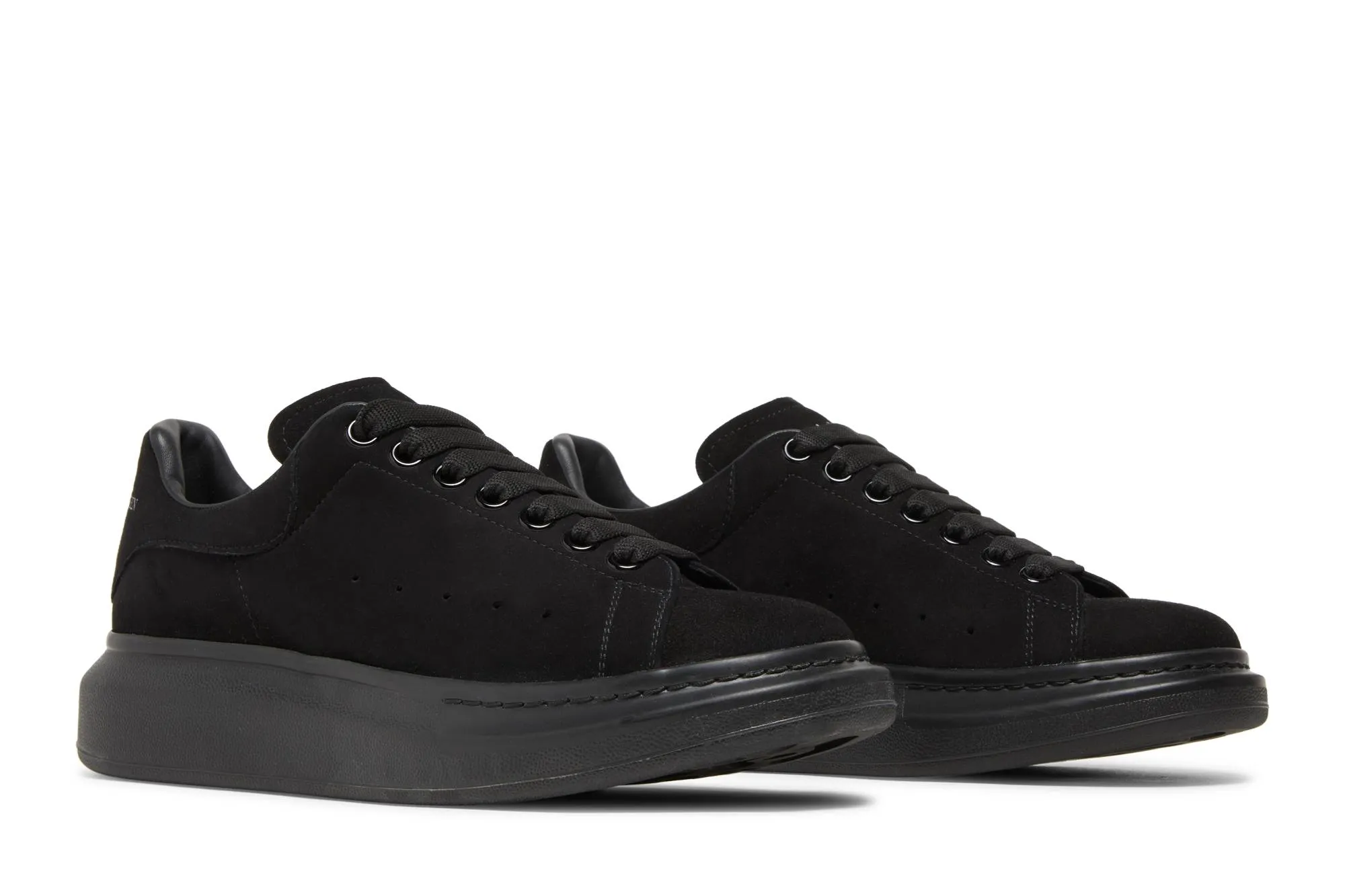 The Alexander McQueen Oversized Sneaker in 'Triple Black' exudes a blend of luxury and streetwear appeal. Crafted from premium leather, these sneakers feature a chunky rubber sole that adds height and comfort. The minimalist design is highlighted by the absence of any contrasting colors, maintaining a sleek all-black aesthetic throughout. With its iconic oversized silhouette and subtle branding, these sneakers are a versatile choice that effortlessly combines sophistication with urban edge.