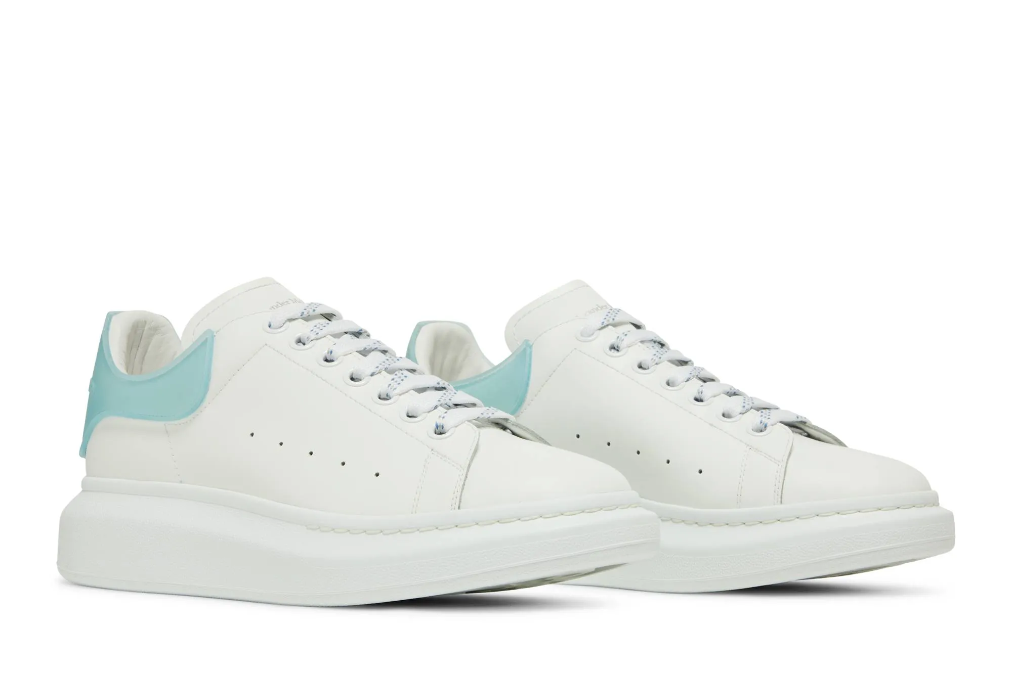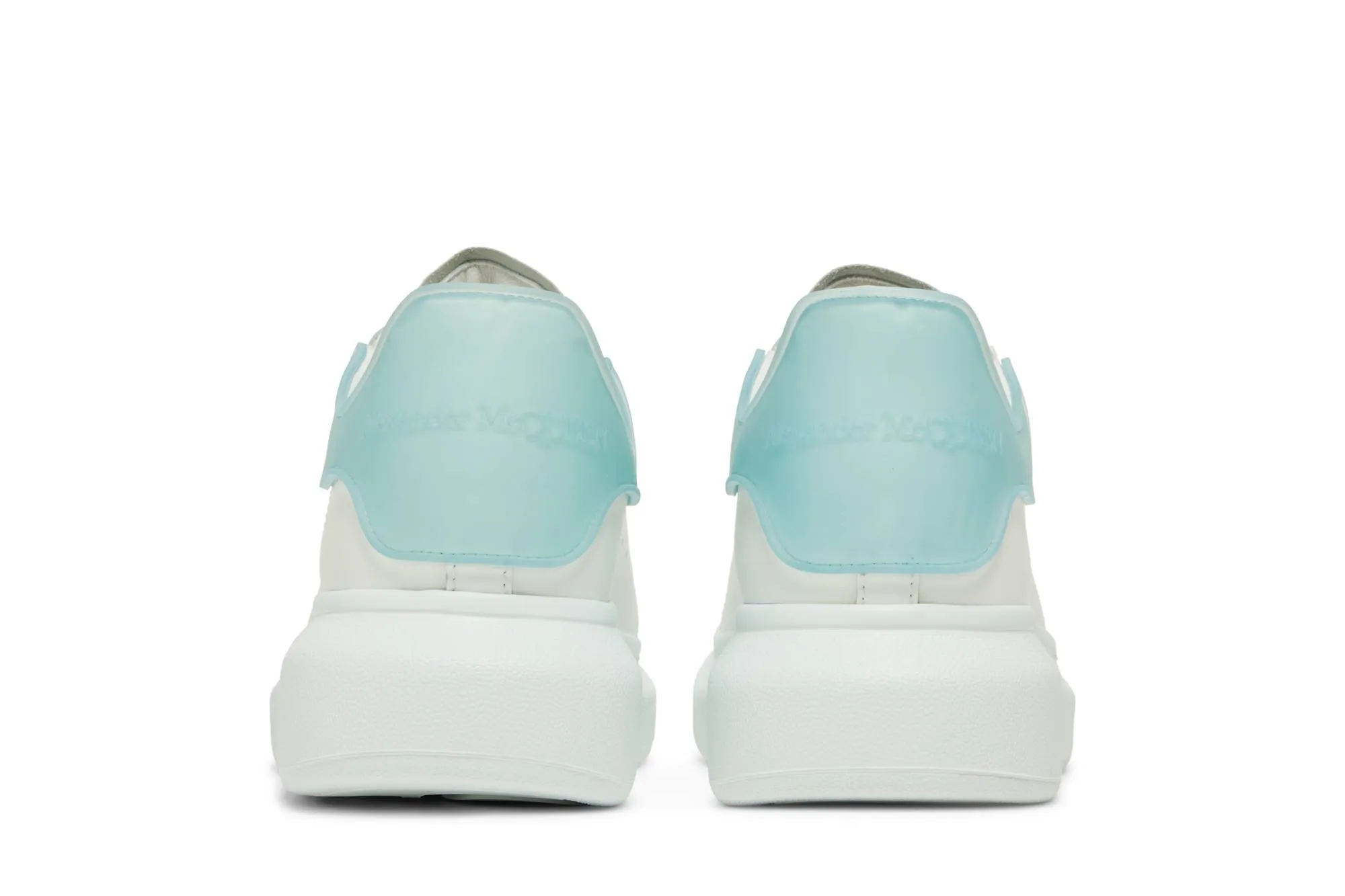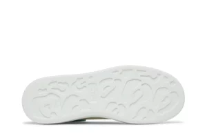 The Alexander McQueen Oversized Sneaker in 'White Blue' blends refined luxury with contemporary style. Crafted from smooth white leather, these sneakers feature accents in a bold blue hue, adding a vibrant and modern twist to the classic design. The oversized silhouette and chunky rubber sole not only enhance comfort but also make a strong fashion statement. Minimal branding and a lace-up closure maintain a sleek and sophisticated aesthetic, making these sneakers versatile for both casual and more polished looks. With their distinctive color combination and impeccable craftsmanship, they embody the distinctive Alexander McQueen aesthetic.