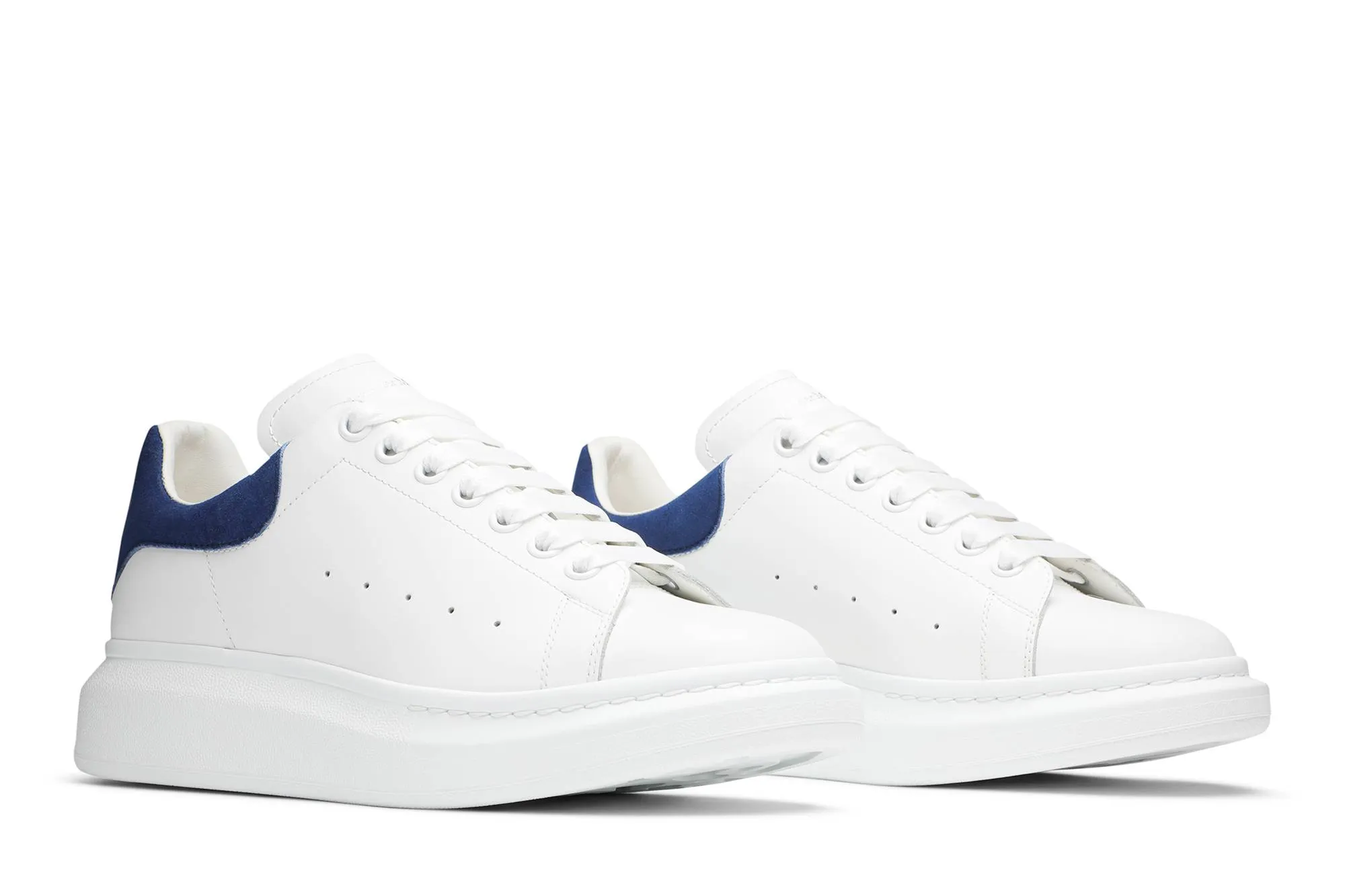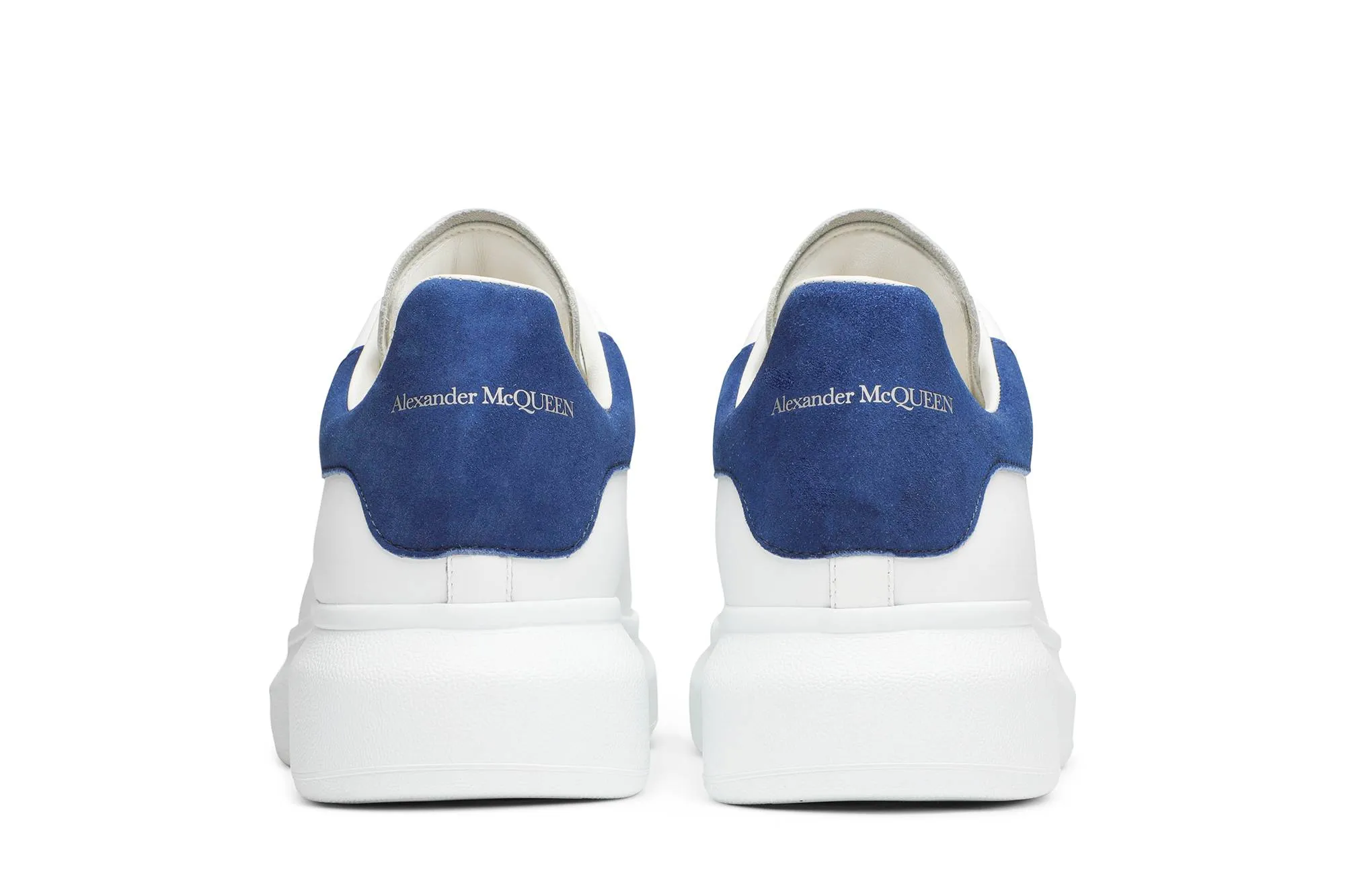 The Alexander McQueen Oversized Sneaker 'White Paris Blue' exemplifies the brand's commitment to blending luxury with urban streetwear aesthetics. Handcrafted in Italy with meticulous attention to detail, these sneakers feature a crisp white leather upper that exudes timeless elegance. The standout feature of this model is the vibrant Paris blue suede heel counter, which adds a bold splash of color and texture, elevating the minimalist design to a new level. The iconic oversized platform sole in white not only enhances the sneaker's silhouette but also ensures comfort and durability for everyday wear. Subtle branding includes the Alexander McQueen logo embossed on the tongue and a contrasting black leather heel tab, maintaining the sneaker's understated yet unmistakable identity. Versatile and stylish, the 'White Paris Blue' Oversized Sneaker effortlessly complements a range of outfits, from casual denim to tailored trousers, making it a standout choice for fashion-forward individuals.