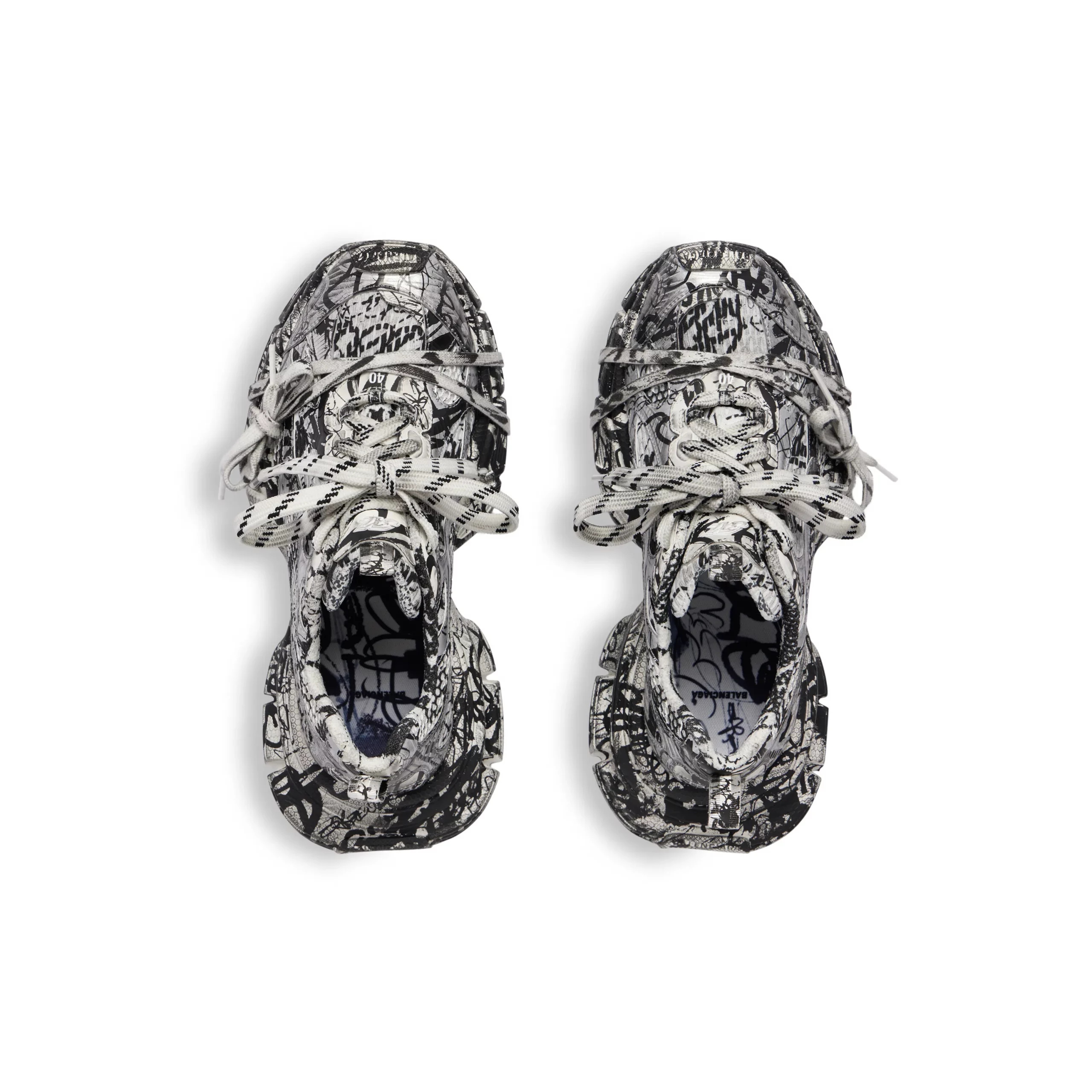 The Balenciaga 3XL Extreme Graffiti Sneaker in 'White and Black' merges artistic expression with bold design elements. Crafted from premium materials, these sneakers feature a striking contrast of white and black tones, enhanced by graffiti-inspired details that add a dynamic edge. The oversized silhouette and chunky sole exemplify Balenciaga's avant-garde aesthetic, offering both comfort and statement style. Finished with distinctive graffiti patterns and subtle branding, these sneakers are perfect for those who seek to make a bold fashion statement while embracing urban-inspired luxury, making them a standout choice for casual and streetwear ensembles.