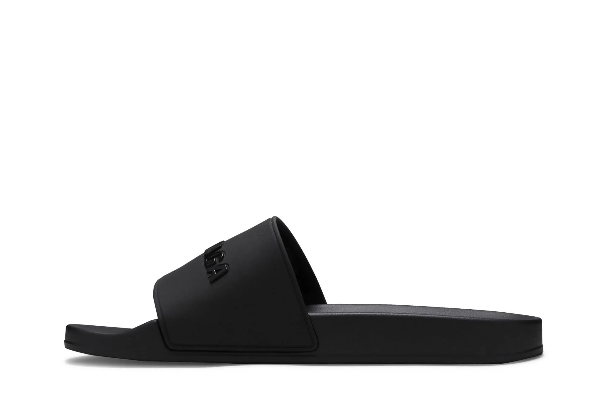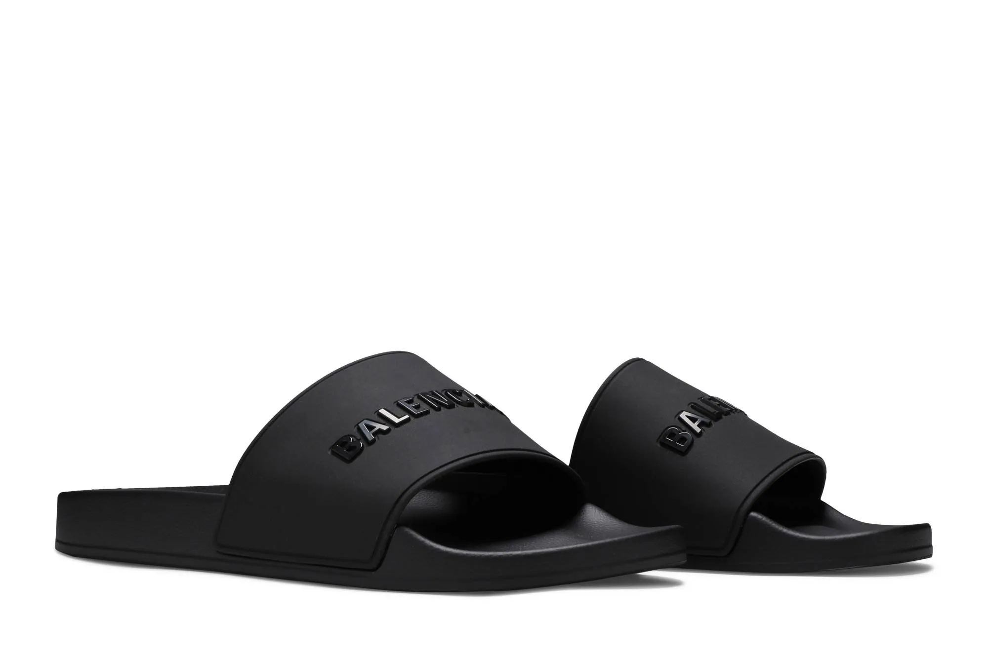 The Balenciaga Pool Slides in classic 'Black' offer a timeless blend of simplicity and urban chic. With their sleek monochrome design, these slides exude versatility, effortlessly complementing any summer ensemble. Crafted for comfort and style, they feature a minimalist aesthetic that transitions seamlessly from poolside relaxation to casual outings. The subtle Balenciaga logo subtly embossed on the strap adds a touch of refinement to these understated slides. Whether paired with swimwear or casual attire, the 'Black' pool slides are a wardrobe staple for those who appreciate both comfort and sophistication.
