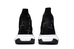 The Balenciaga Speed 2.0 Sneaker in 'Black Logo Licence Printed' redefines urban footwear with its sleek design and bold branding. These sneakers feature a stretchy knit upper adorned with Balenciaga's iconic logo license print, adding a distinctive touch of style. The all-black colorway lends a sense of understated sophistication, making them versatile for a range of outfits. With their sock-like fit and lightweight construction, these sneakers offer exceptional comfort and ease of wear. Whether you're running errands or hitting the streets, the Balenciaga Speed 2.0 Sneaker 'Black Logo Licence Printed' effortlessly combines fashion-forward design with everyday functionality, making it a must-have addition to your sneaker rotation.