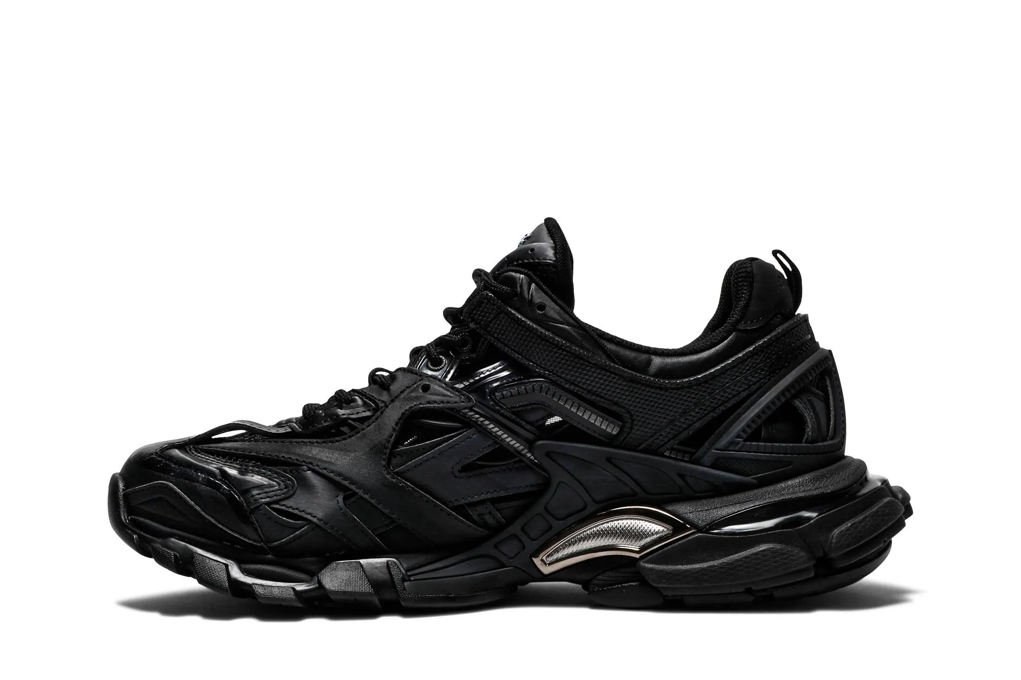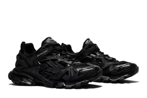 The Balenciaga Track.2 Trainer 'Black' epitomizes the brand's commitment to avant-garde design and technical innovation. Crafted with meticulous attention to detail, these trainers feature a sleek all-black upper constructed from a combination of mesh, nylon, and leather panels, creating a dynamic and textural aesthetic. The multi-paneled design, complete with exaggerated overlays and intricate stitching, adds depth and dimension to the silhouette, while the signature "Track" branding subtly adorns the tongue and side. Equipped with a chunky sole featuring advanced shock-absorption technology, these trainers offer unparalleled comfort and support with every step. Whether worn for athletic pursuits or as a statement-making accessory, the Balenciaga Track.2 Trainer 'Black' exudes urban sophistication and contemporary style, making it a coveted choice for fashion-forward individuals seeking both form and function.