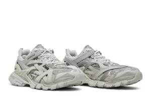 The Balenciaga Track.2 Sneaker in 'White' is a contemporary footwear option that epitomizes modern luxury and urban sophistication. Its clean and crisp white colorway exudes a timeless elegance, making it a versatile choice for a variety of outfits. The multi-panel construction, intricate stitching, and overlays contribute to the dynamic and textured look of these sneakers. Equipped with a chunky sole featuring advanced shock-absorption technology, the Track.2 Sneaker offers optimal comfort and support for all-day wear. Whether paired with casual streetwear or incorporated into more tailored ensembles, these sneakers effortlessly elevate any look with their refined aesthetic and understated yet distinctive style.