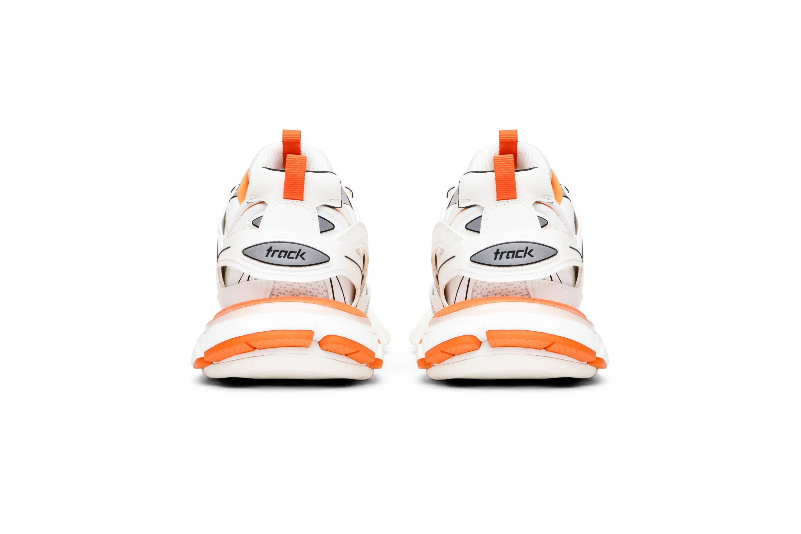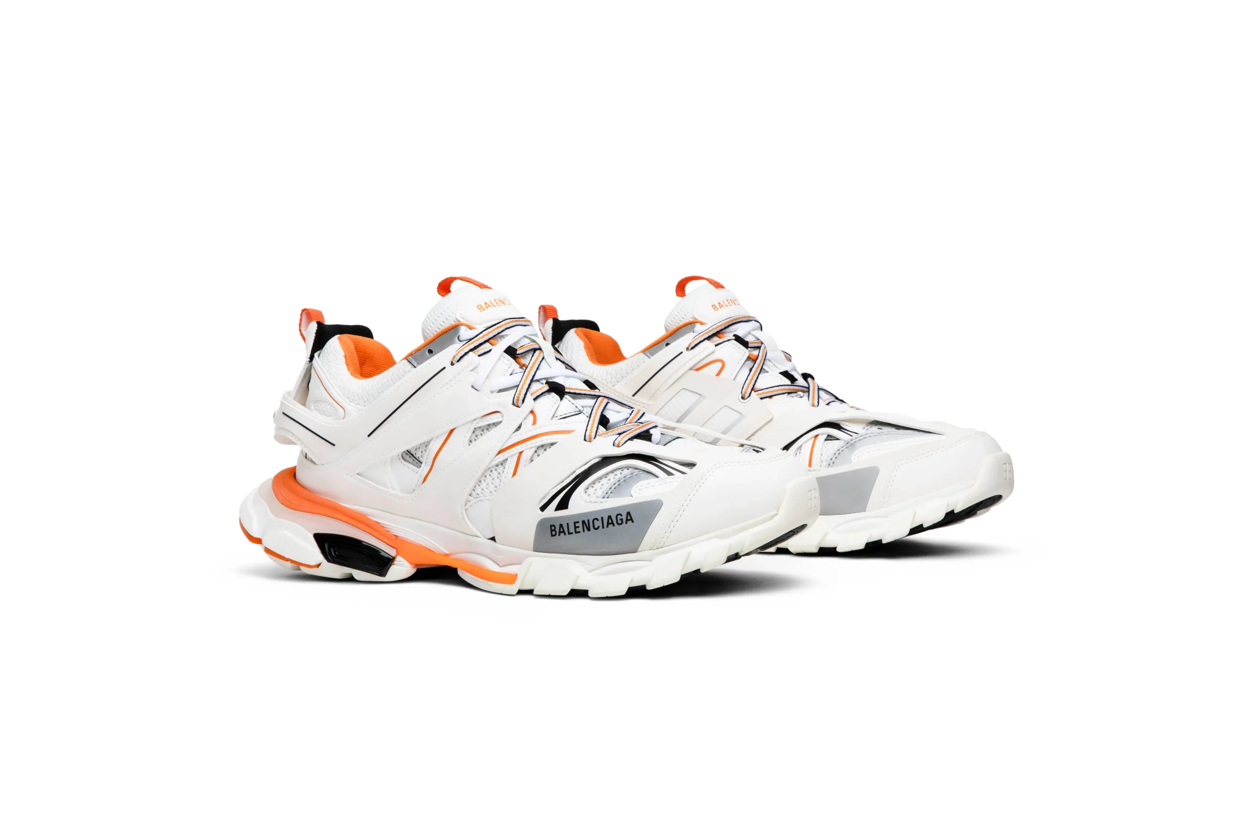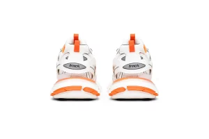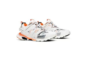 The Balenciaga Track Sneaker in 'White Orange' is a vibrant and dynamic footwear option that seamlessly combines style with functionality. Crafted with precision and attention to detail, these sneakers feature a clean white upper accented with bold pops of orange, creating a striking contrast that catches the eye. The multi-panel construction, coupled with intricate stitching and overlays, adds depth and texture to the design, while the signature branding subtly embellishes the tongue and side. Equipped with a chunky sole and advanced shock-absorption technology, these sneakers offer unparalleled comfort and support, making them ideal for both athletic activities and casual wear. Whether paired with sporty attire or incorporated into everyday looks, the Balenciaga Track Sneaker 'White Orange' exudes contemporary flair and urban sophistication, making it a standout choice for the modern trendsetter.