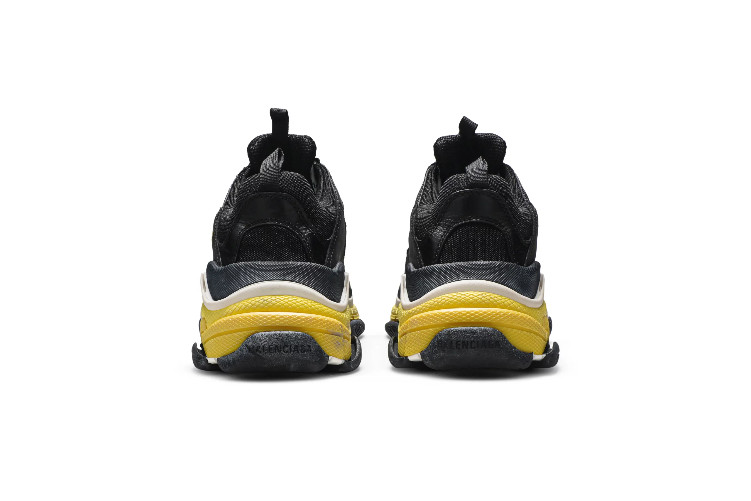 The Balenciaga Triple S Sneaker in 'Black Yellow' is a bold and vibrant footwear option that effortlessly merges streetwear edge with high-fashion aesthetics. The sleek black upper serves as the perfect canvas for the striking pops of yellow accents, creating a dynamic and attention-grabbing design. Featuring the iconic chunky silhouette characteristic of the Triple S line, these sneakers offer both style and comfort with their multi-layered sole construction. Crafted with meticulous attention to detail and premium materials, these sneakers boast durability and quality craftsmanship. Whether paired with casual streetwear for an urban edge or integrated into a more elevated ensemble for a bold statement, the Balenciaga Triple S Sneaker in 'Black Yellow' exudes confidence and individuality, making it a standout choice for fashion enthusiasts seeking to make an impact.