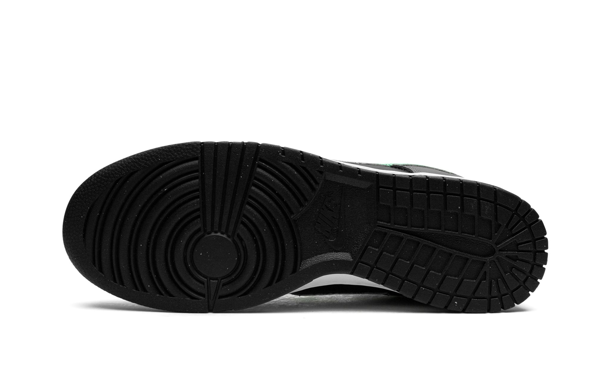 The Nike Dunk Low “Black/Green Glow” is a colorway of the classic basketball shoe with a versatile and eye-catching look. The “Black/Green Glow” Dunk Low features a black leather base with Iron Grey leather on the toe cap, forefoot, eyelets, collar, and heel. A Green Glowd leather Swoosh logo breaks up the shoe’s shadowy design on either side. A black “Nike” logo is embroidered on the heel and a Green Glow “Nike” logo is paired with a Swoosh on the black nylon tongue tag. The white rubber midsole and black rubber outsole complete the look.