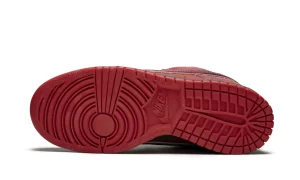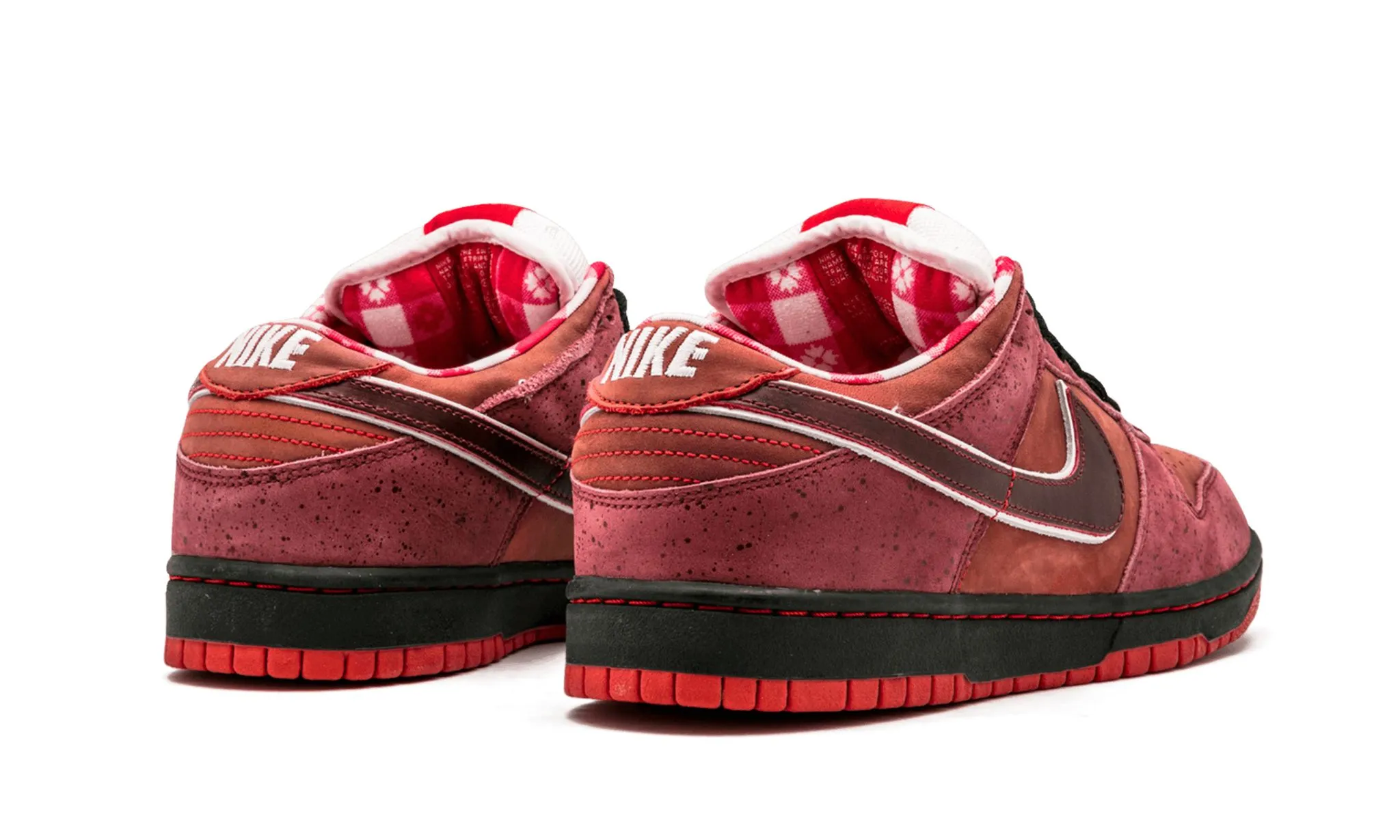 The Dunk Low Premium SB 'Lobster' is a standout sneaker inspired by the culinary delicacy, capturing its essence through vibrant colors and unique details. The shoe features a textured upper resembling a lobster's shell, with panels in hues of red, pink, and orange, reminiscent of a cooked lobster's appearance. Contrasting black accents on the Nike Swoosh, laces, and outsole add depth to the design, while details like a lobster claw rubber band on the toe box and shell-inspired graphics on the insole further enhance the theme. The Dunk Low silhouette retains its skateboarding functionality with a padded tongue and Zoom Air unit in the heel, ensuring comfort and impact protection. The Dunk Low Premium SB 'Lobster' is a sought-after release that combines culinary inspiration with sneaker culture, appealing to collectors and enthusiasts alike for its creativity and craftsmanship.