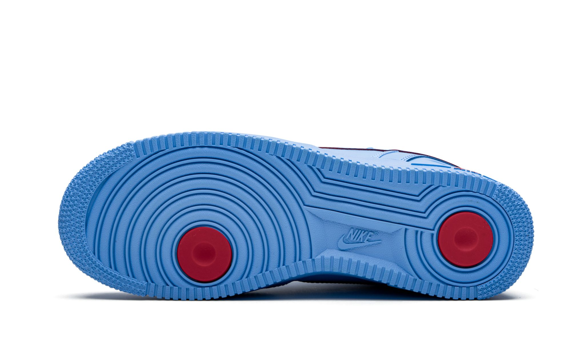 The Just Don x Nike Air Force 1 High “All Star” functions as an ode to the Windy City and was released during All-Star Weekend February 2020. The striking colorway is dedicated to the city flag of Chicago, which just so happens to be the hometown of the shoe's creator, Don C. Composed of premium blue leather, the upper features a tonal Swoosh on the mid-panel and an ankle strap for lockdown support. Fiery red embroidered “Force” branding appears on the blue leather tongue and mini red Swoosh detailing graces the toe. The city flag of Chicago is located inside of the tongue while the heel includes a molding akin to the Air Force 1s successor, the Air Force 2.
