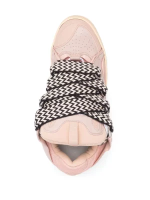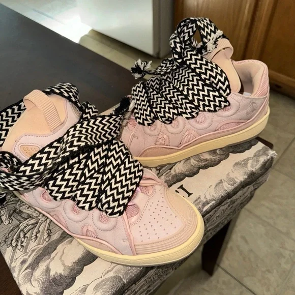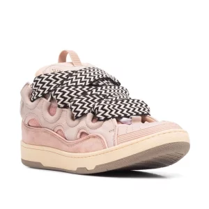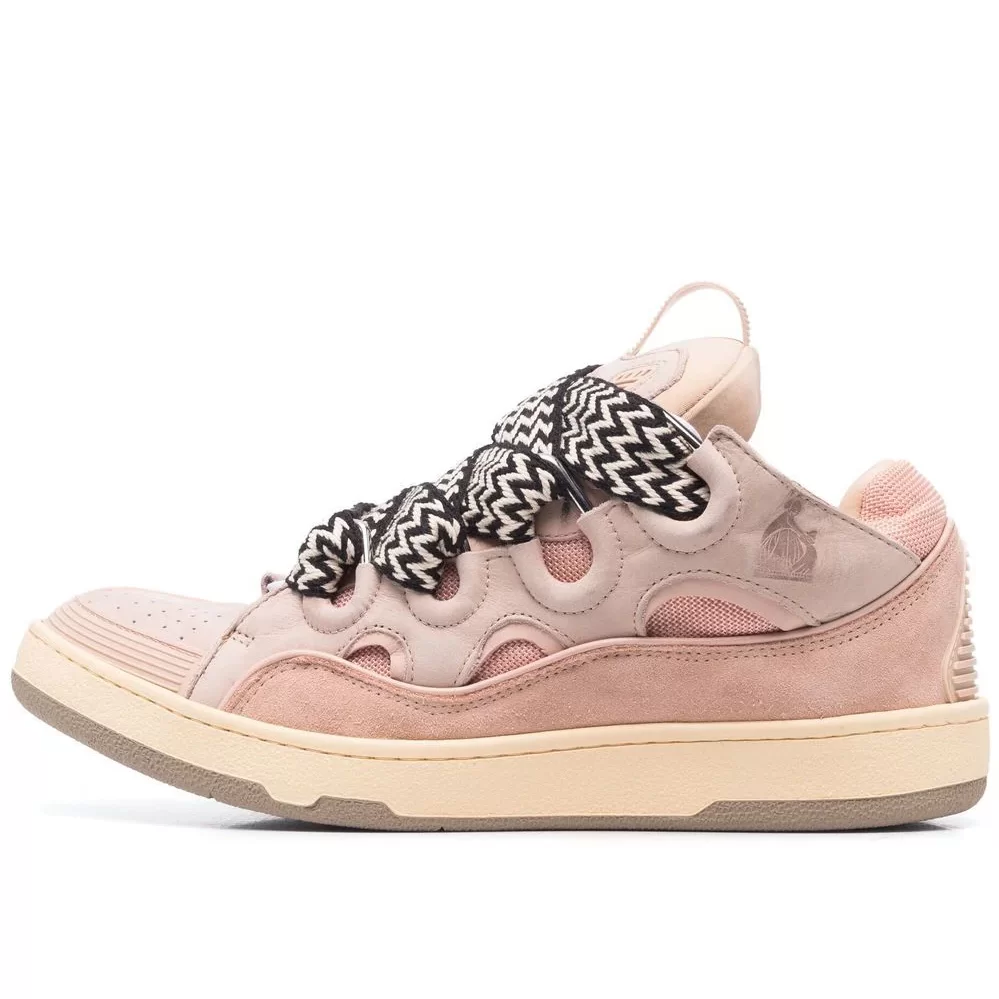 The Lanvin Curb Sneakers in 'Pink' exude a contemporary charm with a playful twist. Crafted from smooth pink leather, these sneakers showcase a blend of elegance and urban style. The minimalist design is enhanced by subtle detailing, including the iconic Lanvin logo discreetly embossed on the side, reflecting the brand's commitment to craftsmanship. A durable rubber sole ensures comfort and longevity, making these sneakers ideal for both casual outings and semi-formal occasions. Whether paired with jeans or a skirt, the Lanvin Curb Sneakers in 'Pink' add a touch of sophistication and individuality to any ensemble.