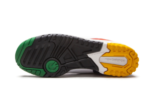 The New Balance 550 “Multicolor” is a vibrant colorway of the retro basketball and lifestyle shoe that was released by New Balance in May 2021. The 550 returned in a monumental way when New York streetwear brand Aime Leon Dore reintroduced the model in vintage-inspired colorways as part of the brand’s 2020 collaborations with New Balance. On this just-as-nice general release, a vibrant multicolor block keeps the silhouette as fresh as ever. Smooth and dotted white leather appears on the upper, while a red leather “N” logo on either side contrasts the neutral-colored base. Gold “550” detailing can be found on the forefoot and gold “NB” branding appears on the navy blue leather heel. Oak Leaf Green accenting highlights the look of the heel tab and inner lining. A colorful, retro basketball-inspired “New Balance” logo appears on the white nylon tongue. The cream-colored rubber midsole features “New Balance” and “NB” detailing on the lateral side. Green, navy, and yellow blocks on the outsole complete the look.