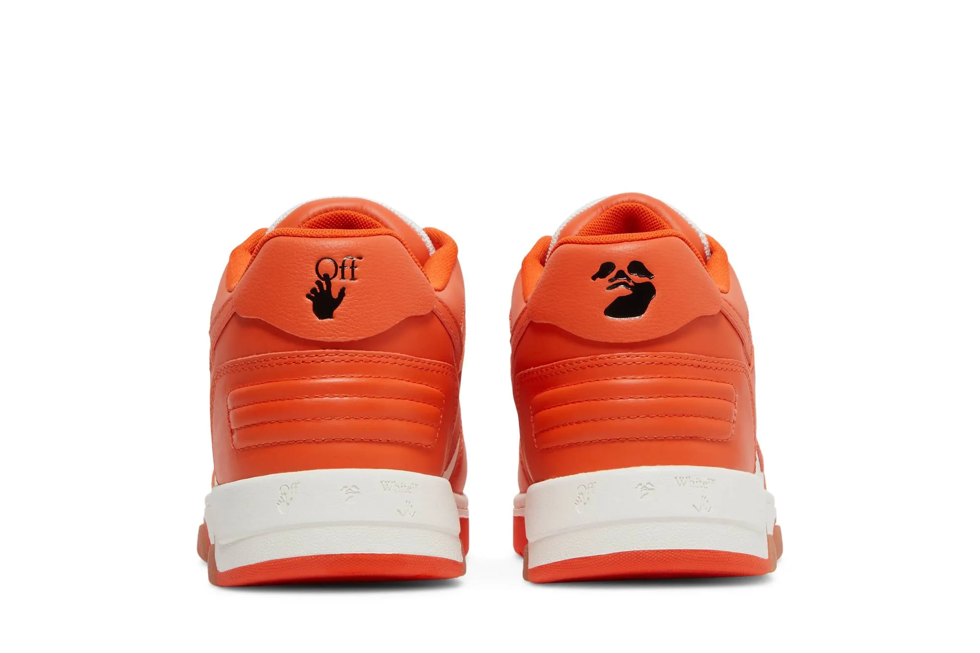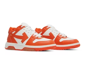 The Off-White Out Of Office Low-Top 'Orange White' sneakers are a vibrant expression of contemporary style and luxury. Featuring a sleek low-top silhouette, they boast a bold orange hue that commands attention. The premium leather construction ensures both durability and a luxurious feel, while the iconic quotation marks and industrial-inspired arrow motif on the side panels add Off-White's distinctive touch. With a comfortable rubber sole and signature branding details including the zip-tie tag, these sneakers effortlessly blend streetwear aesthetics with high-end craftsmanship, making them a standout choice for fashion-forward individuals.