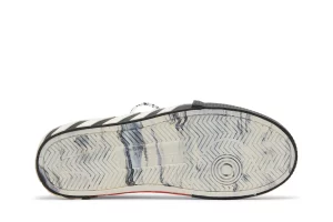 The Off-White Vulcanized Low Canvas 'White Black' epitomizes Virgil Abloh's approach to contemporary sneaker design with its clean and modern aesthetic. Featuring a pristine white canvas upper complemented by bold black accents, including a rubber toe cap and Off-White's trademark detailing, this shoe exudes understated sophistication. It combines minimalist style with subtle branding elements like the iconic zip tie and logo on the tongue, creating a distinct look that resonates with urban fashion sensibilities. The vulcanized rubber sole enhances durability and comfort, ensuring versatility for both casual and semi-formal occasions. The Off-White Vulcanized Low Canvas 'White Black' is a testament to Abloh's ability to merge streetwear appeal with refined craftsmanship, making it a sought-after choice for sneaker enthusiasts and fashion-forward individuals alike.
