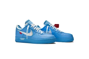 The Off-White x Air Force 1 Low '07 'MCA' is a highly coveted collaboration between Off-White and Nike, part of Virgil Abloh's exploration of contemporary art and streetwear. Originally unveiled at the Museum of Contemporary Art (MCA) in Chicago, these sneakers feature a vibrant 'University Blue' colorway that pays homage to the iconic 'MCA' theme. The design maintains the classic Air Force 1 Low silhouette, enhanced with premium leather construction and Abloh's signature deconstructive elements such as exposed stitching and translucent overlays. Off-White branding details, including the zip tie, quotation marks, and Helvetica text, accentuate the shoe's modern aesthetic. With Nike's Air cushioning technology providing comfort and support, the Off-White x Air Force 1 Low '07 'MCA' represents a fusion of artistic expression and sneaker culture, making it a prized possession for collectors and enthusiasts alike.
