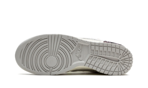 The Off-White x Nike Dunk Low “Lot 12/50” is one of fifty colorways of the retro basketball shoe created by Virgil Abloh and Nike in August 2021. The Off-White x Nike Dunk “Lot 50” collection follows the duo’s coveted “The 10” collaboration from 2017 that saw Abloh recreate deconstructed colorways of iconic Nike and Air Jordan models. On “Lot 12,” Sail canvas appears on the toe, mid-panel and collar. The overlays and Swoosh are constructed in Neutral Grey leather. Black “Nike” branding is printed on the heel and Off-White’s signature Helvetica text is found on the medial side. A secondary, bungee cord-like lacing system is added to the upper in addition to a traditional lacing setup. The look is carried over from Off-White’s first Nike Dunk collaboration from 2019. A marbled pink-and-black insert with “Lot 12 of 50” appears on the Sail midsole.
