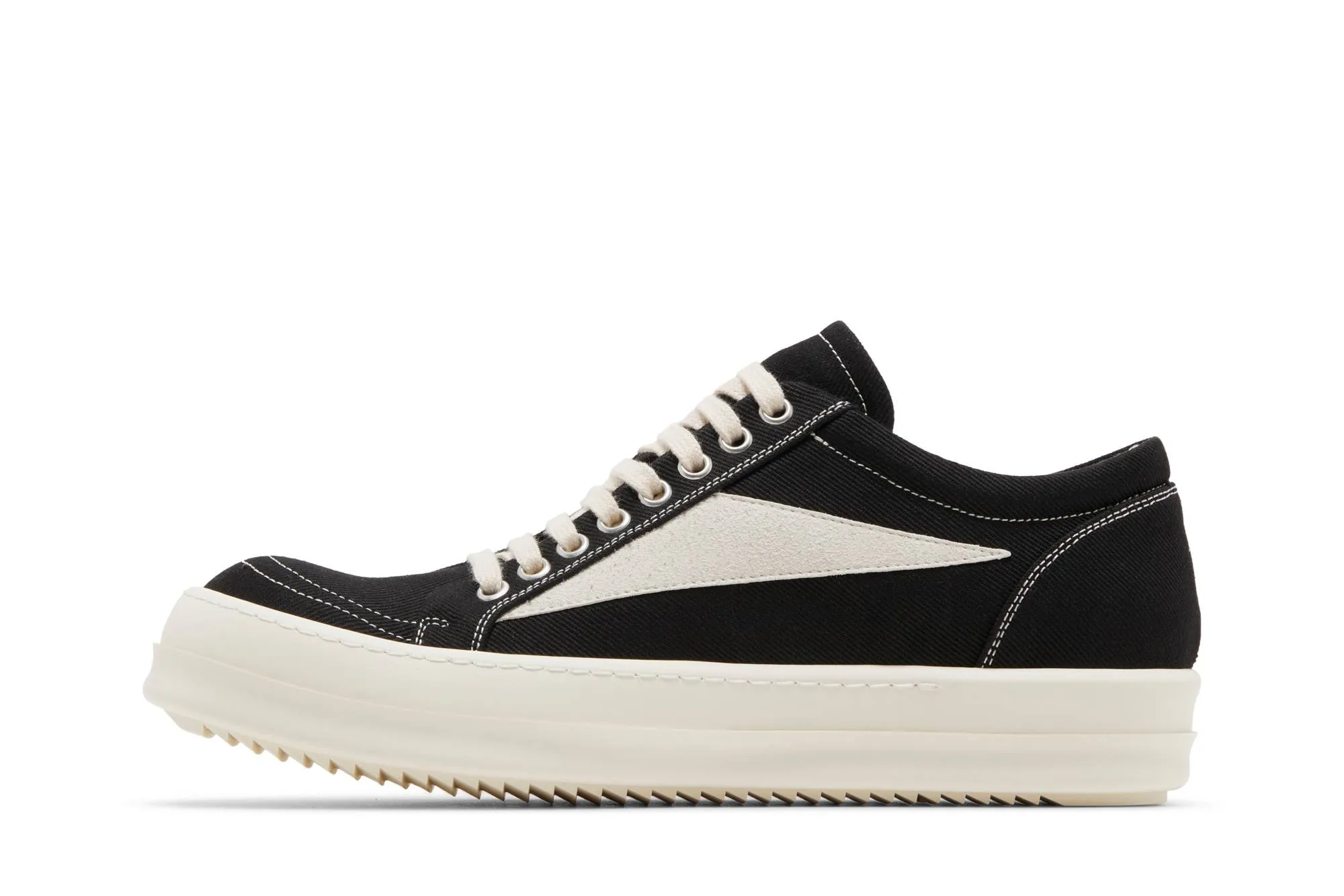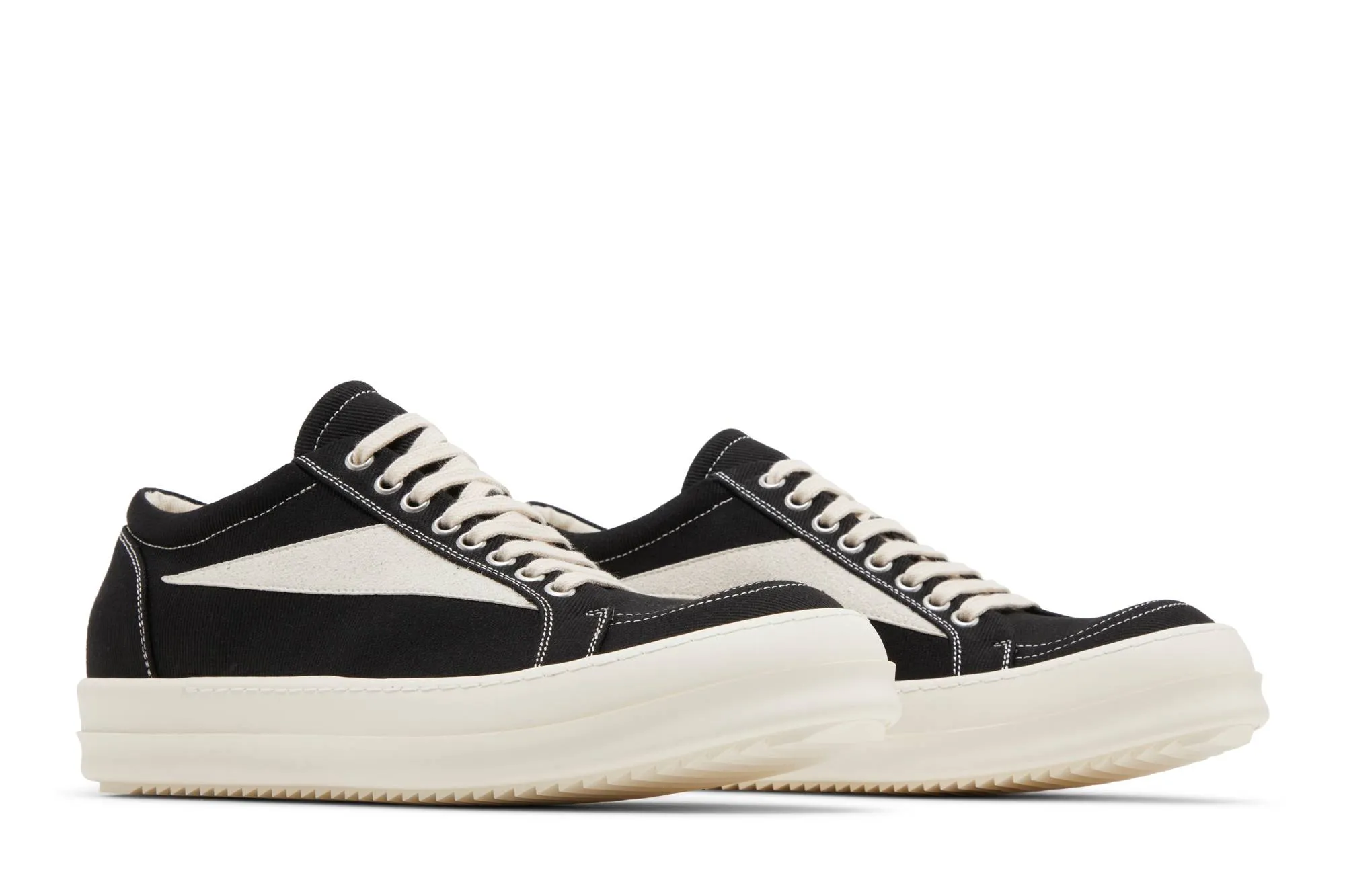The Rick Owens DRKSHDW Luxor Vintage Low 'Black Milk' sneakers are a standout in the designer's DRKSHDW line, renowned for its fusion of high-fashion and streetwear influences. These sneakers are crafted with meticulous attention to detail, featuring a sleek and minimalist silhouette that embodies Owens' avant-garde aesthetic.