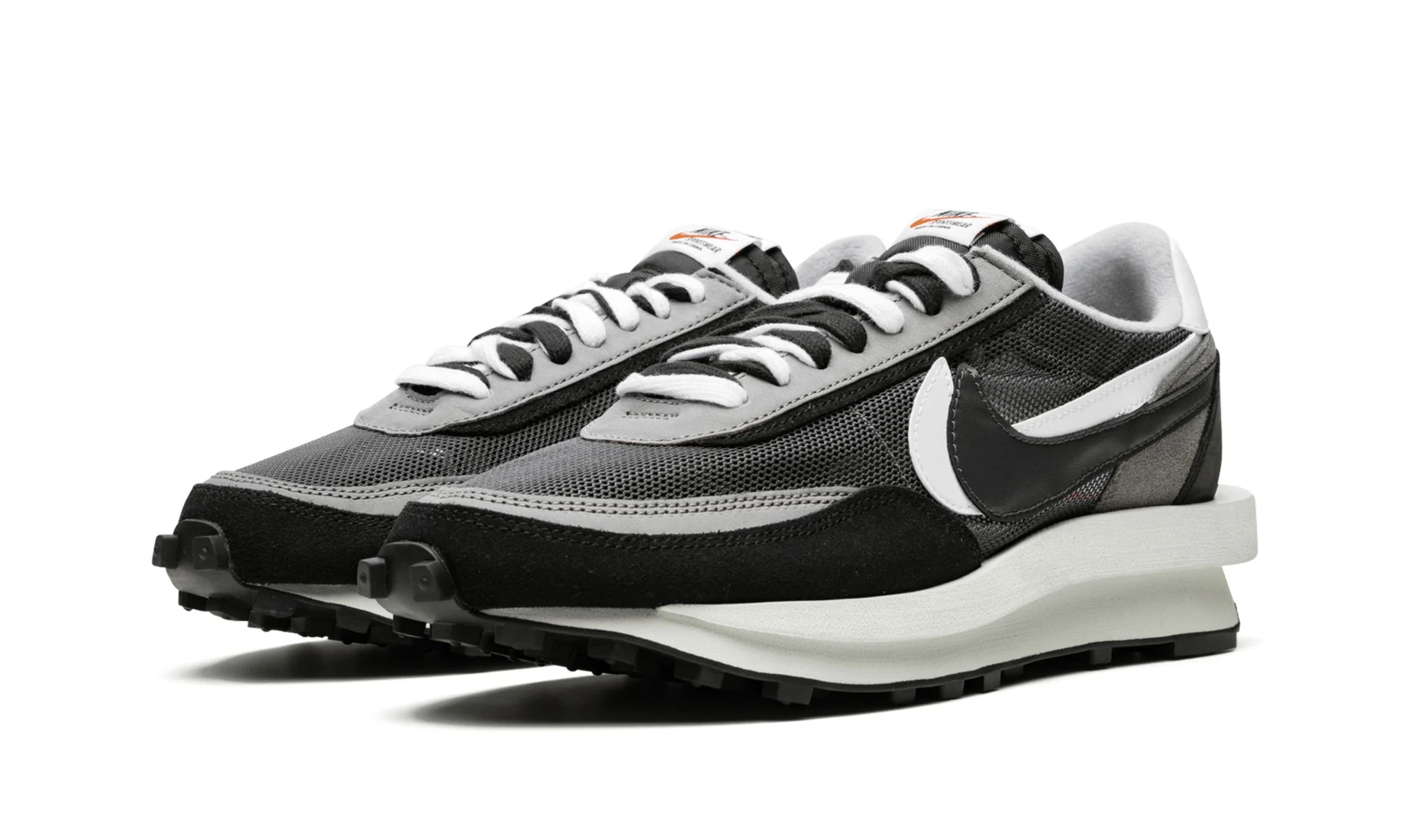 The Sacai x LDWaffle 'Black' sneaker showcases a masterful collaboration between Sacai's avant-garde design ethos and Nike's iconic LDWaffle silhouette. Featuring a sleek all-black colorway, this iteration highlights Sacai's signature double-layered approach with dual tongues, Swooshes, and laces, creating a visually compelling texture and depth. The shoe's stacked midsole adds a contemporary edge while enhancing comfort and support. Designed for both fashion-forward styling and everyday wearability, the Sacai x LDWaffle 'Black' combines luxury craftsmanship with urban streetwear aesthetics, making it a standout choice for sneaker enthusiasts and trendsetters alike.