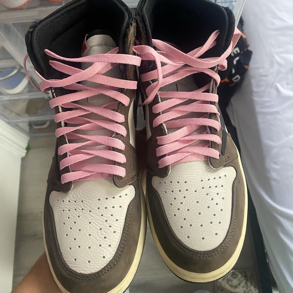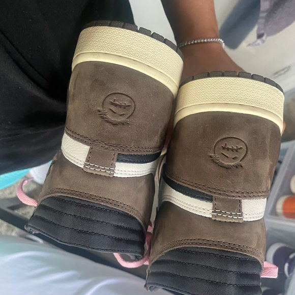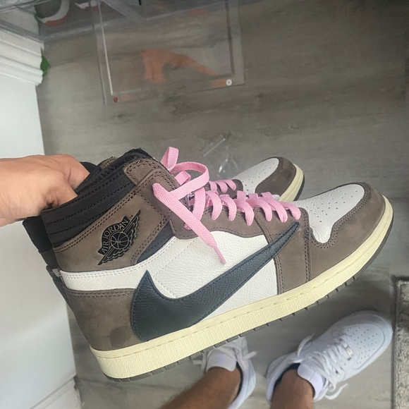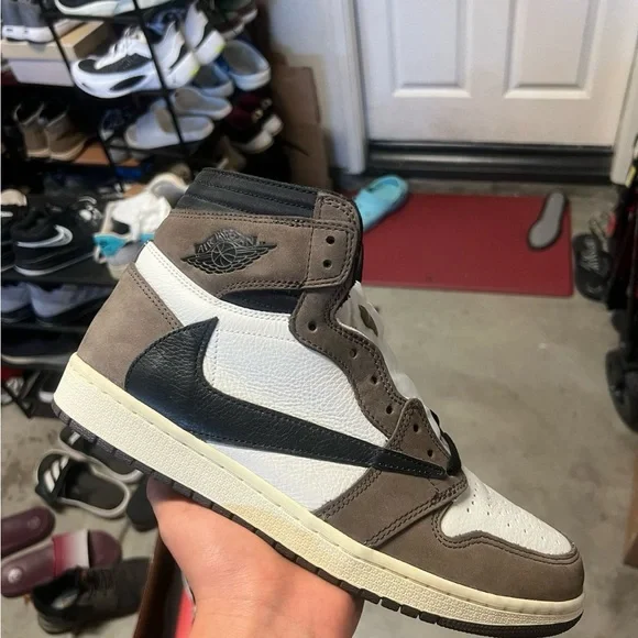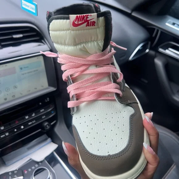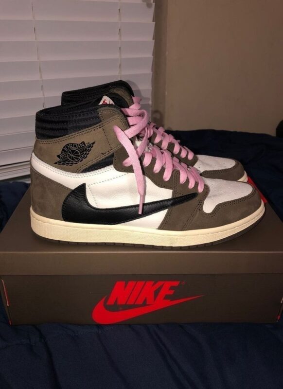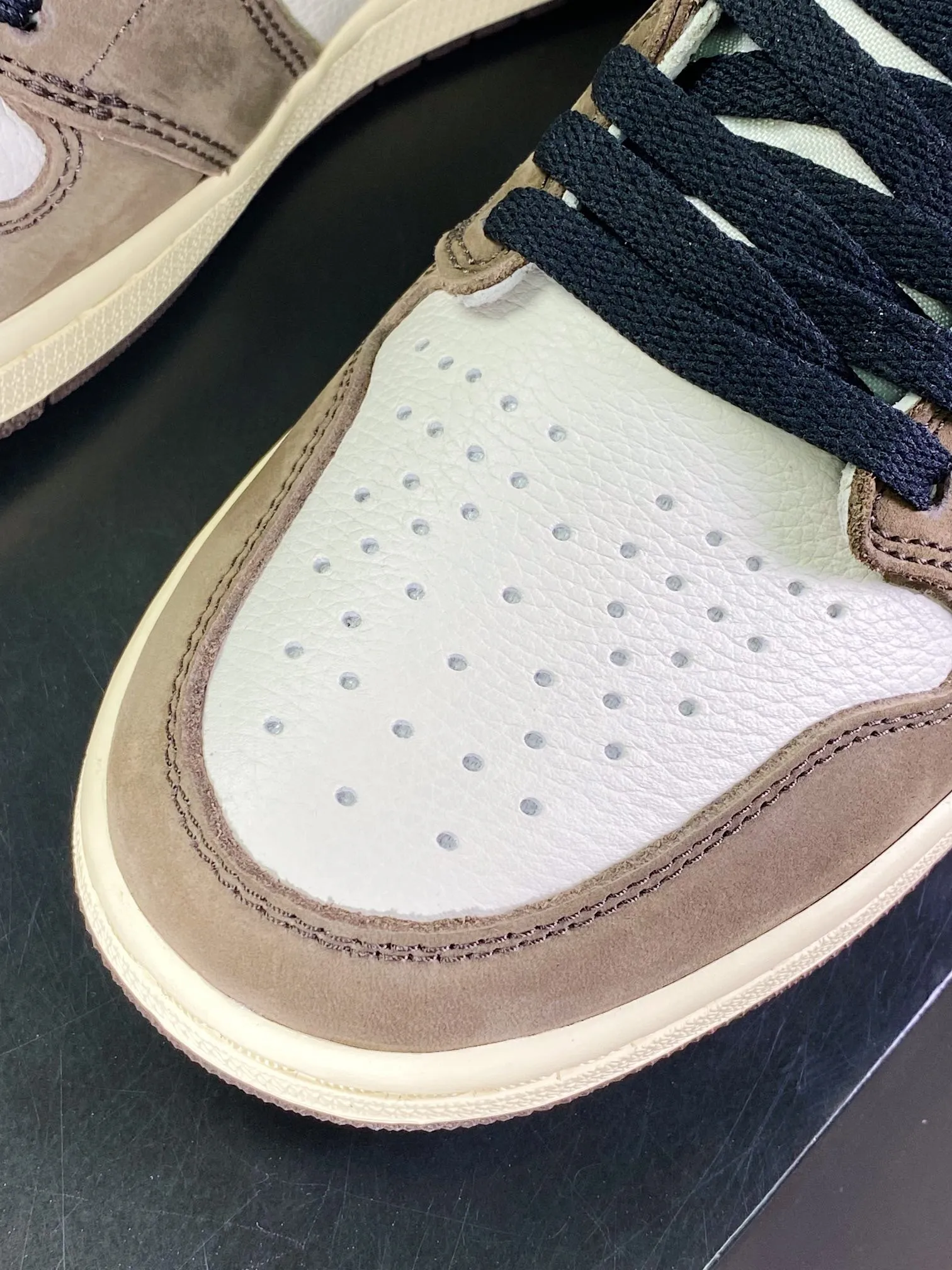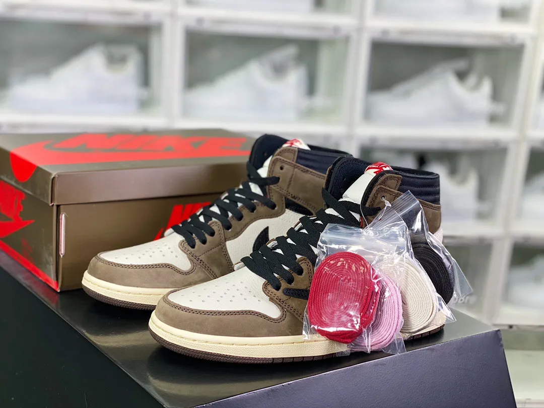 The Travis Scott x Air Jordan 1 High OG is the limited edition collaboration from the rap superstar and Jordan Brand on the iconic silhouette that features a major twist. One look at the Travis Scott x Air Jordan 1 and you’ll notice the backwards Swoosh across the upper, a first for the legendary silhouette. Travis Scott’s Air Jordan 1 also features a premium construction in Sail leather and Dark Mocha nubuck with black accents. The Jordan 1 is further modified with a padded nylon collar that has a hidden stash pocket. Each pair is completed with Scott’s “face” logo embossed on the heels and a “Cactus Jack” logo on the right insole.