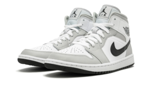 The Women’s Air Jordan 1 Mid “Grey Fog” is a women's colorway of Michael Jordan’s first signature shoe in its mid-top style that excels in versatility. The “Grey Fog” brings another appealing look to the Air Jordan 1 Mid, one of the most popular shoes in Jordan Brand’s collection. Designed to be dressed up or down, the “Grey Fog” features white leather on the perforated toe, mid-panel, and collar. Contrasting Grey Fog leather appears on the overlays on the toe cap, forefoot, eyelets, collar, and heel. The Swoosh is found in black leather and a black Wings logo appears on the collar. Additional branding, including a black Jumpman logo and “Air” detailing, can be found on the white nylon tongue tag.