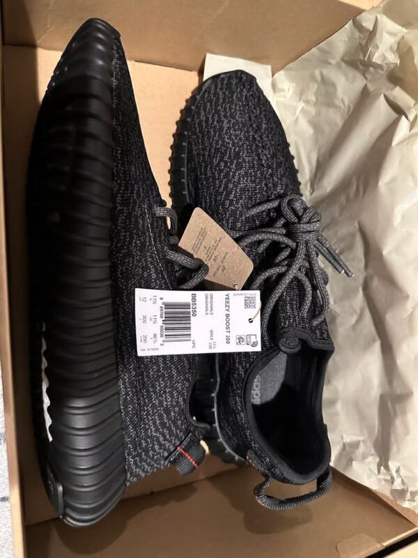 The Yeezy Boost 350 is constructed with a Primeknit upper complete with a TPU sole that covers ample Boost foam cushioning, with the result being a sneaker that combines comfort and style flawlessly. And that's without mentioning how well the textured black look pairs with the red accents. This version of the "Pirate Black" shoe features minor modifications, including additional heel padding for more support.