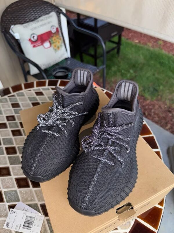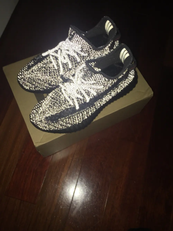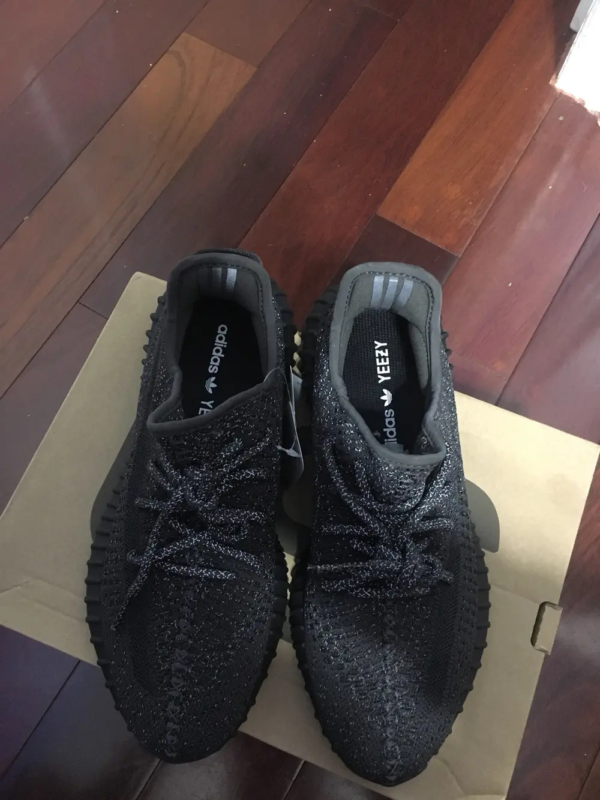 The Yeezy Boost 350 V2 'Black Reflective' represents a sleek and refined iteration of the iconic silhouette. Its primeknit upper is adorned in a deep black hue with reflective accents, creating a striking contrast and enhancing visibility in low-light conditions. The shoe maintains the signature sock-like fit and comfort associated with the Yeezy Boost 350 V2 line, ensuring a snug and adaptive feel. Underfoot, the Boost midsole technology delivers responsive cushioning for all-day comfort and support. Finished with a durable rubber outsole featuring a distinctive tread pattern, the Yeezy Boost 350 V2 'Black Reflective' combines premium materials with minimalist design, making it a versatile choice for casual wear with a touch of contemporary flair.
