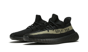 The Yeezy Boost 350 V2 “Green” is among the trio of black-based colorways released on November 23, 2016. Like the “Copper” and “Red” versions it released alongside, this "Green" edition is constructed with a black Primeknit upper with a matching black rubber midsole that covers the full-length Boost foam cushioning. Its discerning feature is the olive green stripe that runs from heel to toe. The signature "SPLY-350" message appears throughout the stripe in black script, while green speckles are also added throughout the upper.