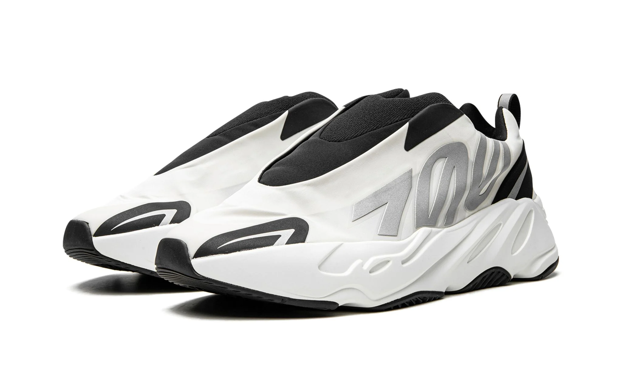 The adidas Yeezy Boost 700 MNVN Laceless “Analog” is an alternate version of Kanye West’s popular lifestyle shoe with a laceless design. The Yeezy Boost 700 MNVN Laceless in the “Analog” colorway features a slip-on, laceless construction that was designed to help the wearer get in and out of the shoe with ease. The 700 MNVN Laceless model is nearly identical to the original 700 MNVN silhouette, save for a few subtle modifications. As for the “Analog” colorway, the shoe features a light grey nylon build with silver “700” branding on the sides. Black synthetic overlays with reflective accenting appear throughout the upper. A white Boost cushioned midsole completes the look.